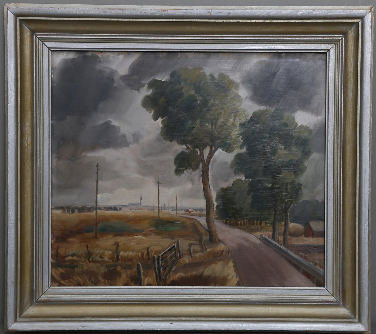 376183. AXEL ANDERSSON. Blick auf Linköping. Öl auf Platte. Unterzeichnet.
