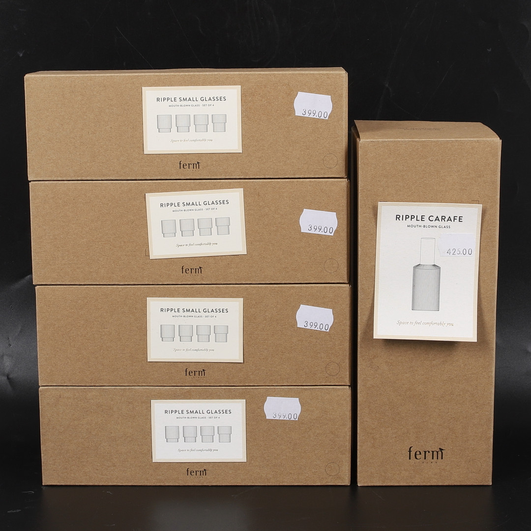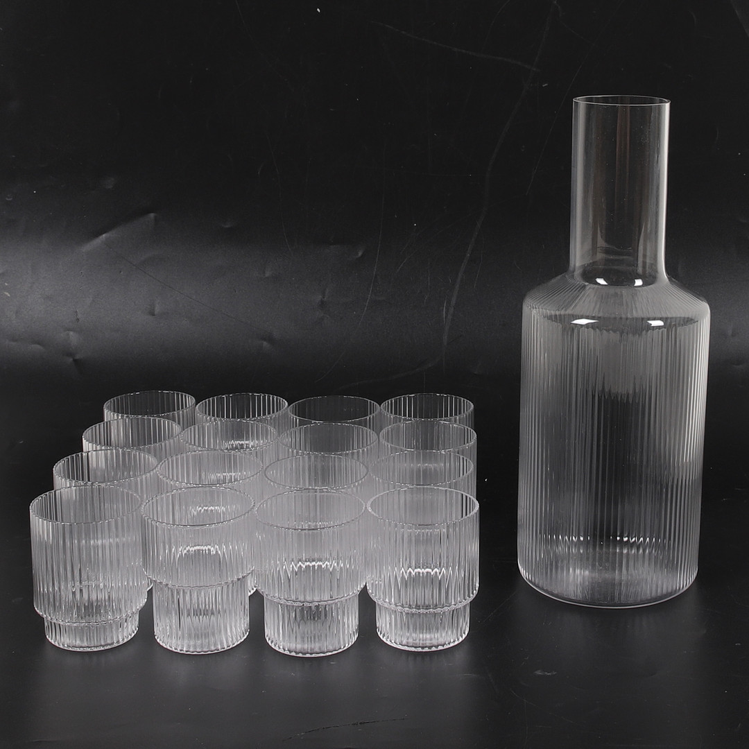 3767032. 17-teiliges Glas mit Karaffe, „Ripple“, Ferm Living, Dänemark.