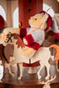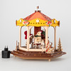 Mohair/Textil. Holz, teilweise farbig bemalt. Auf drei gedrechselten Füßen das hexagonal gekantete und dreifach getreppte Postament. Applikationen von Sternen in verschiedenen Größen und passigen Tannenbäumen im Wechsel mit drei Figurengruppen. Entsprechendes Rondell mit drei weihnachtlich gekleideten Bären auf Pferden sitzend. Glockenelemente und Sterne auf dem Dach. Bekrönt von dem Firmenschriftzug. Elektrifiziert.