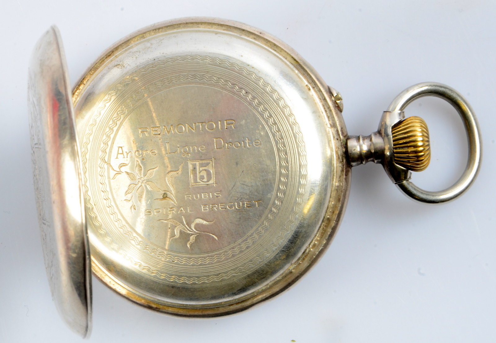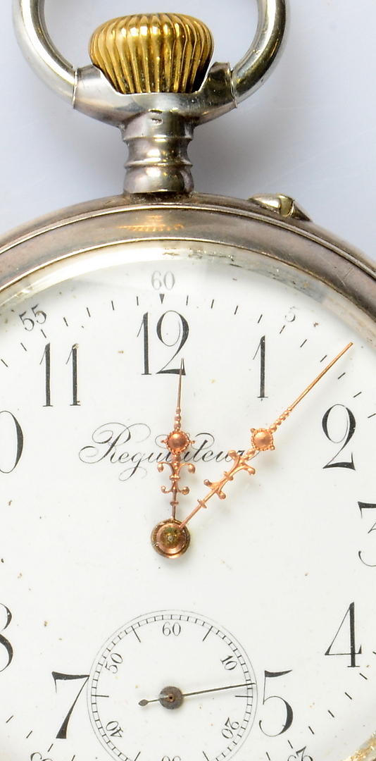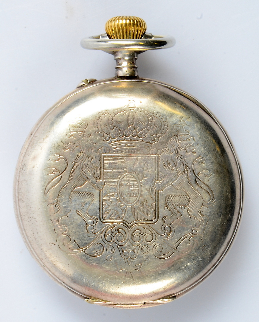 377179. TASCHENUHR, Silber, Regulateur, Rückseite mit Wappen.