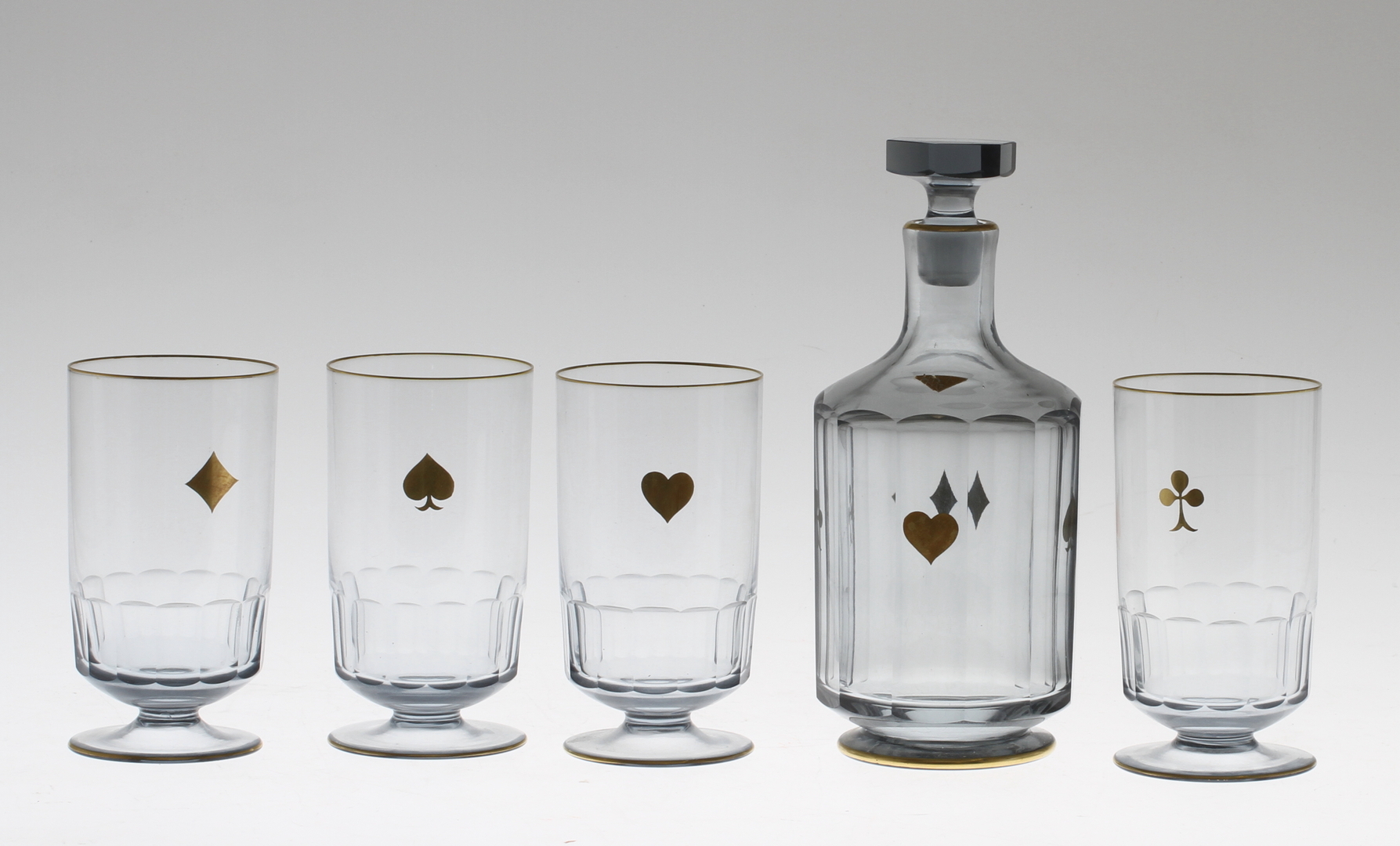 37730. KARAFFE, GROGGLAS, 4 Stück, Gullaskruf, 1900er Jahre.
