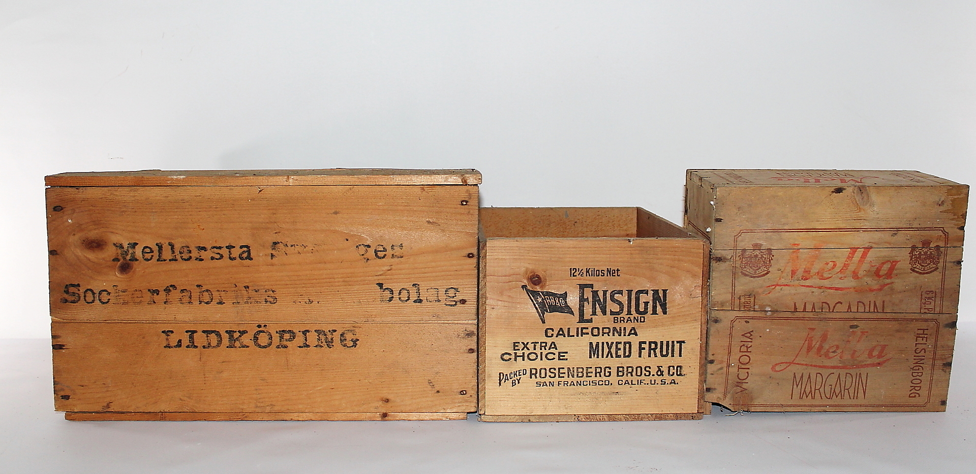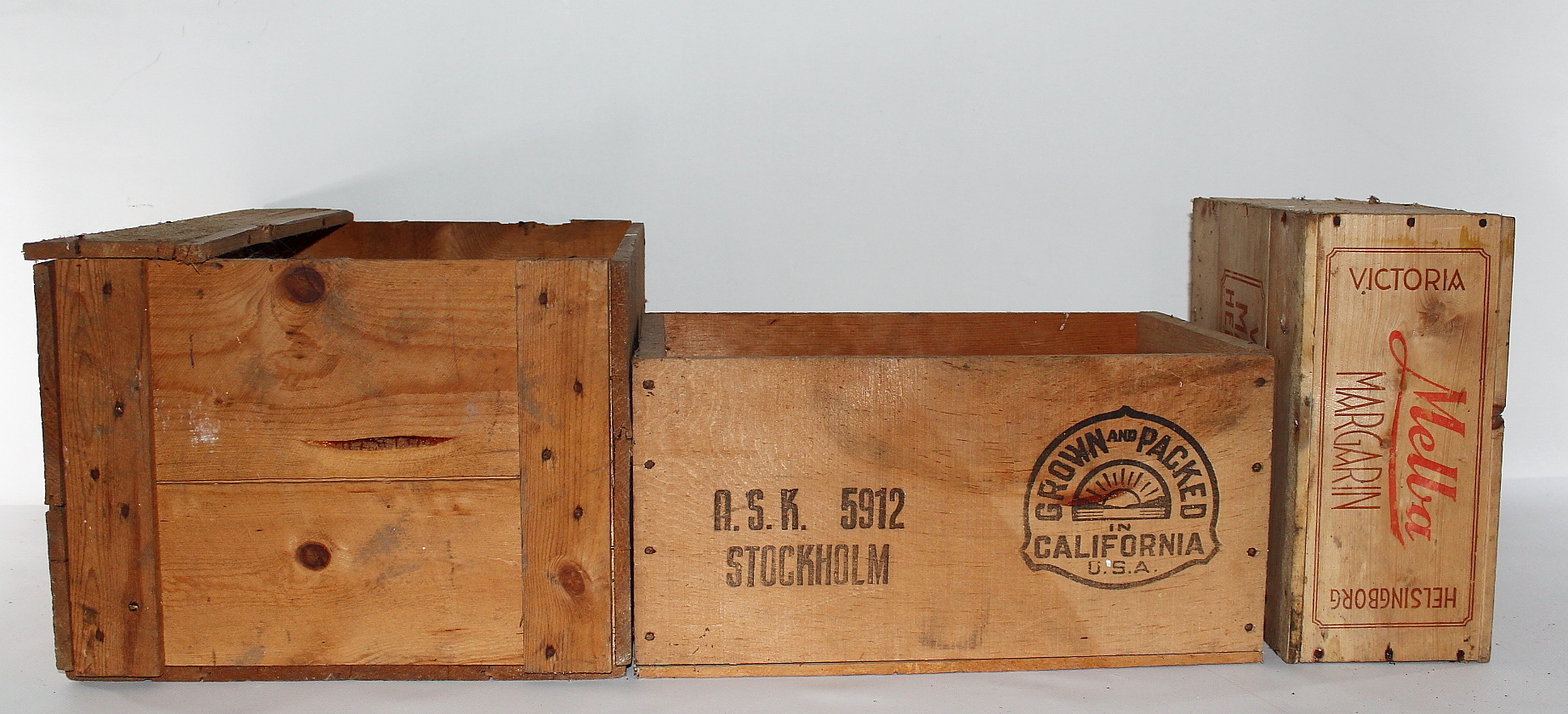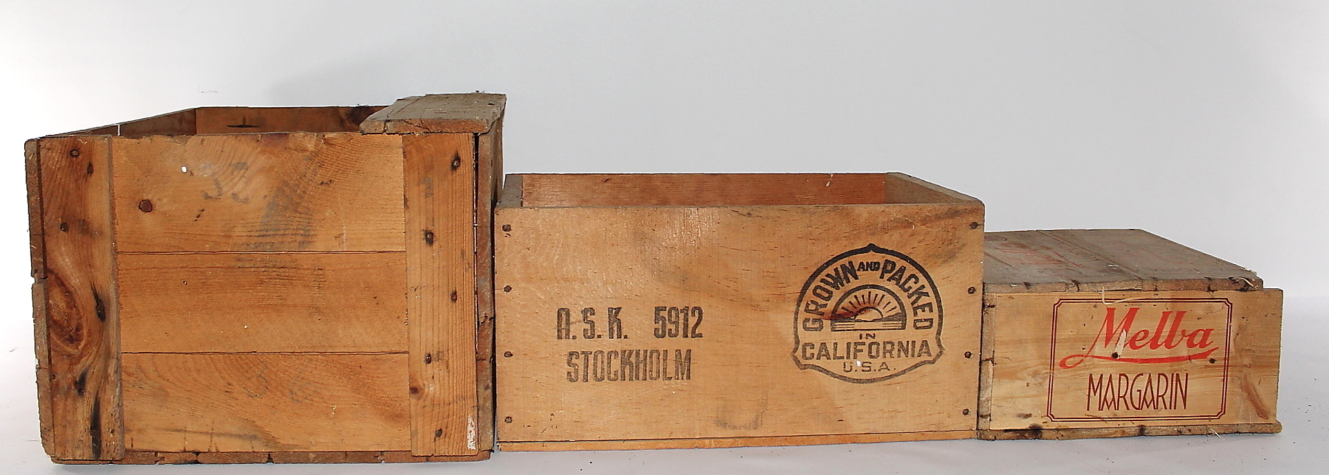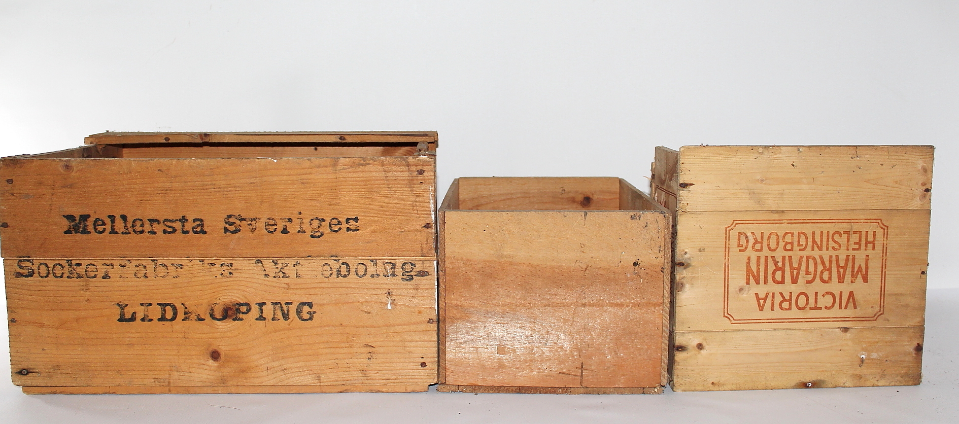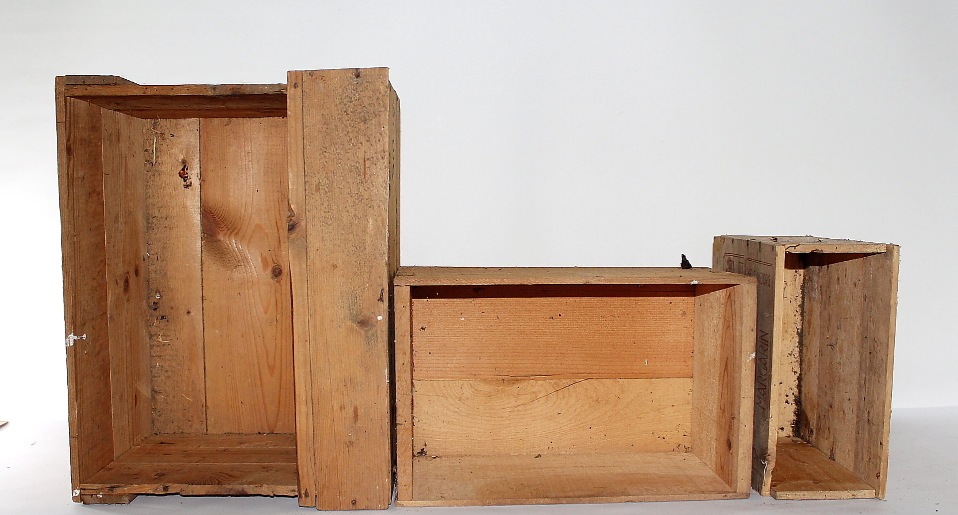 377482. HOLZKÄSTEN, Drei Stück.