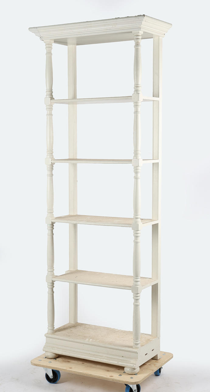 3776302. EIN WEISS GESTRICHENES HOHES OFFENES BÜCHERREGAL.