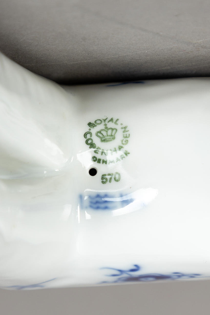 Porzellan mit unterglasurblauer Bemalung. Modell Nr 570. Unterglasurgrüne und -blaue Manufakturmarke von 1935.