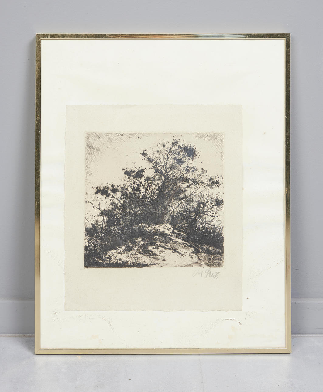 Josef Steib (1898-1957), Böschung, Radierung, 1927, signiert und datiert, ca. 32,5 x 28,5 cm, hinter Glas gerahmt, mit Rahmen ca. 51 x 41 cm.