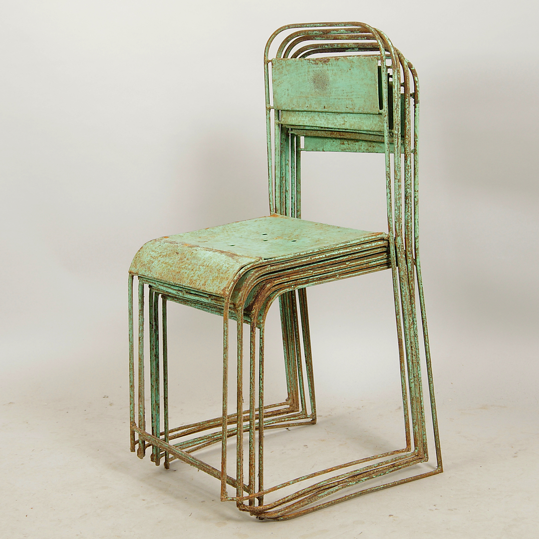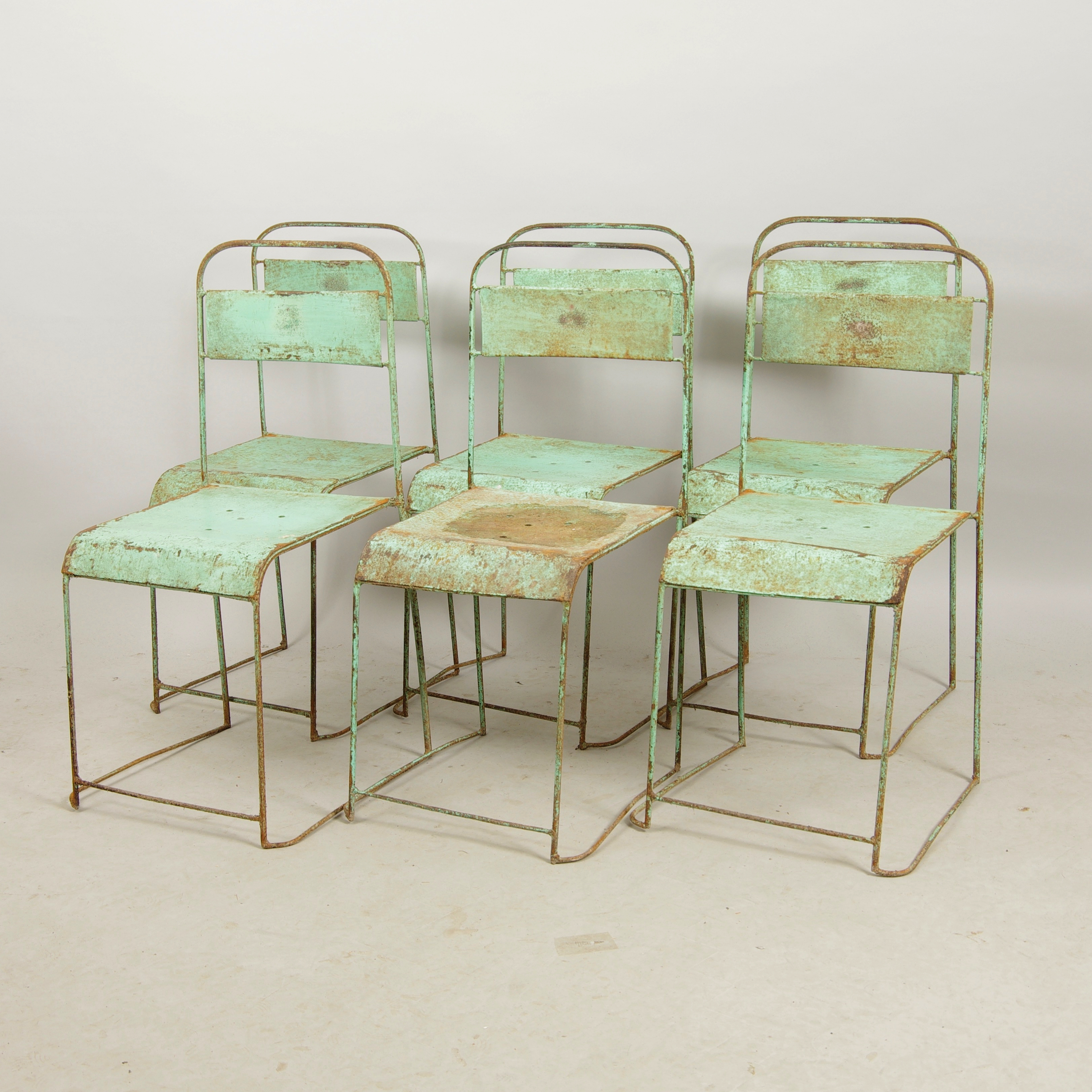 379299. STÜHLE, 6 Stück, lackiertes Blech, Industriedesign.