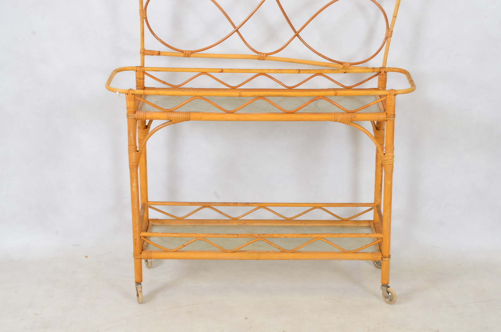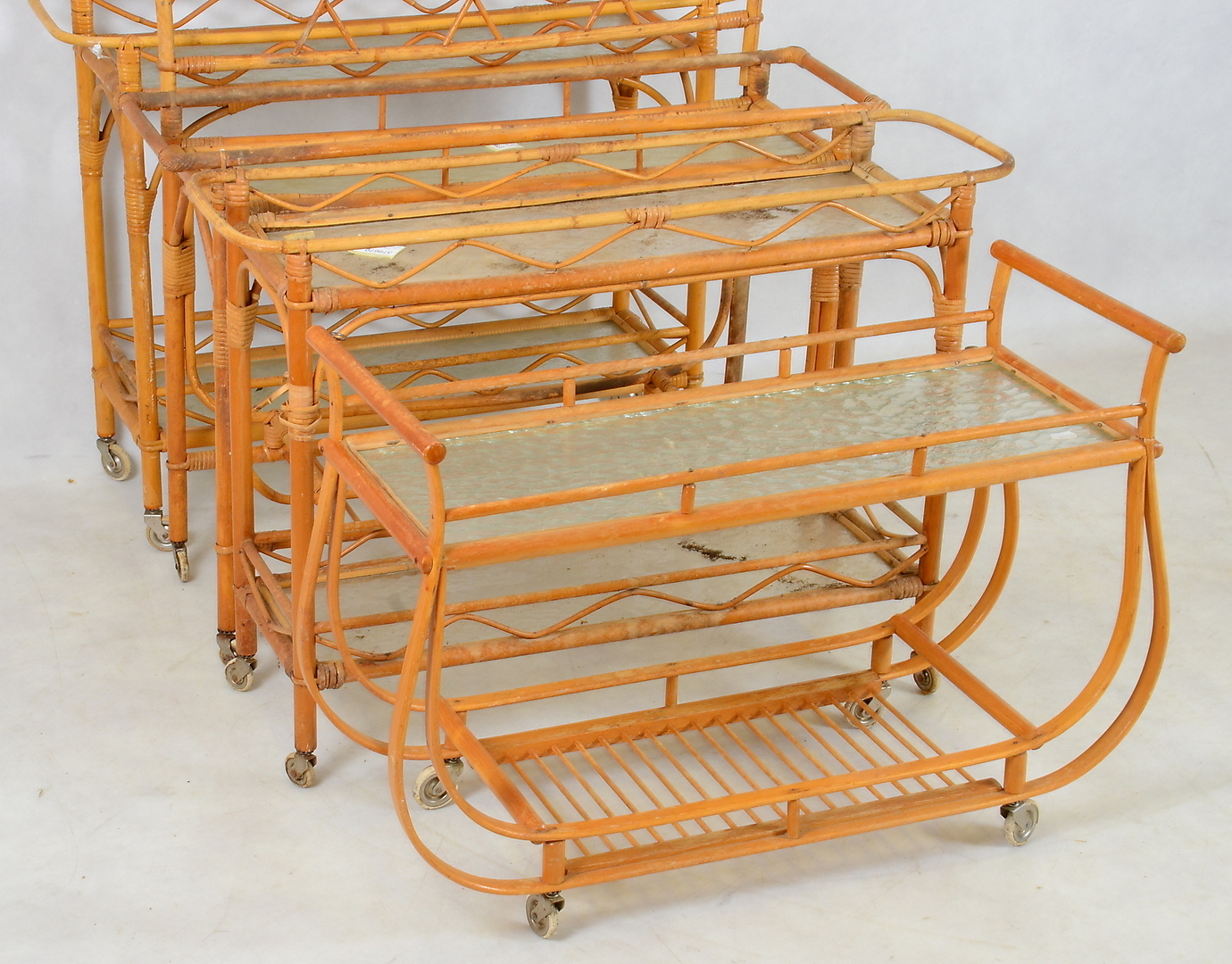 379670. BLUMENTISCH, Rattan. 1950er/60er Jahre. 3 st.