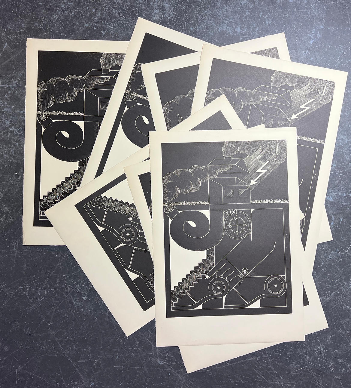 Einzelne Grafiken sind zum Teil gebräunt, haben Stauchungen, kleine Fehlstellen oder Einrisse.