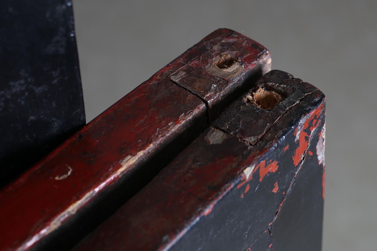 Spuren, trockene Risse, Farbverlust. Abnutzung, Beschädigung. Die Türen sind nicht repariert.