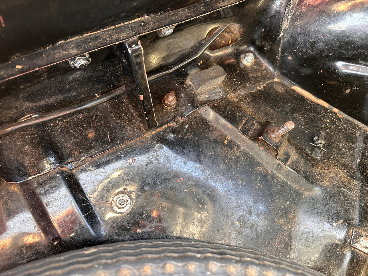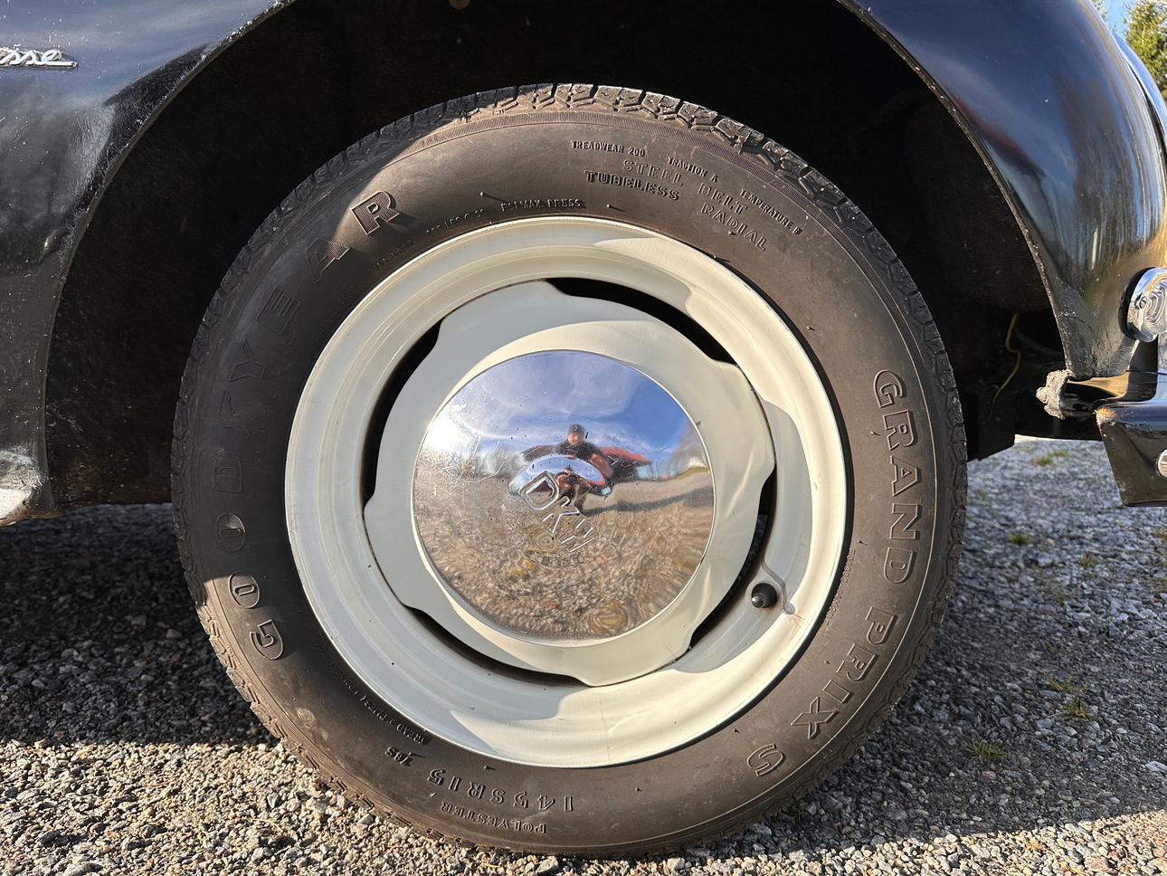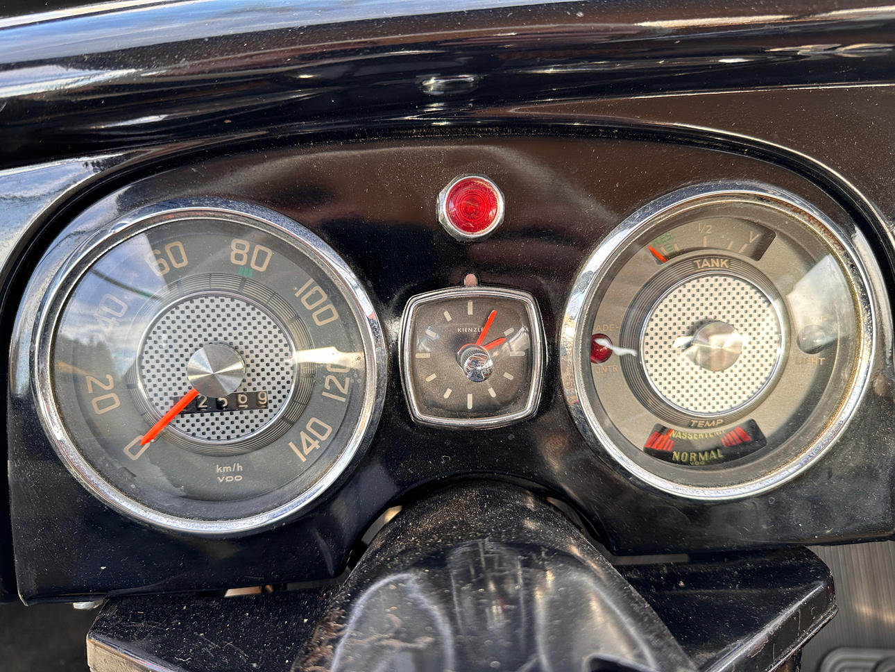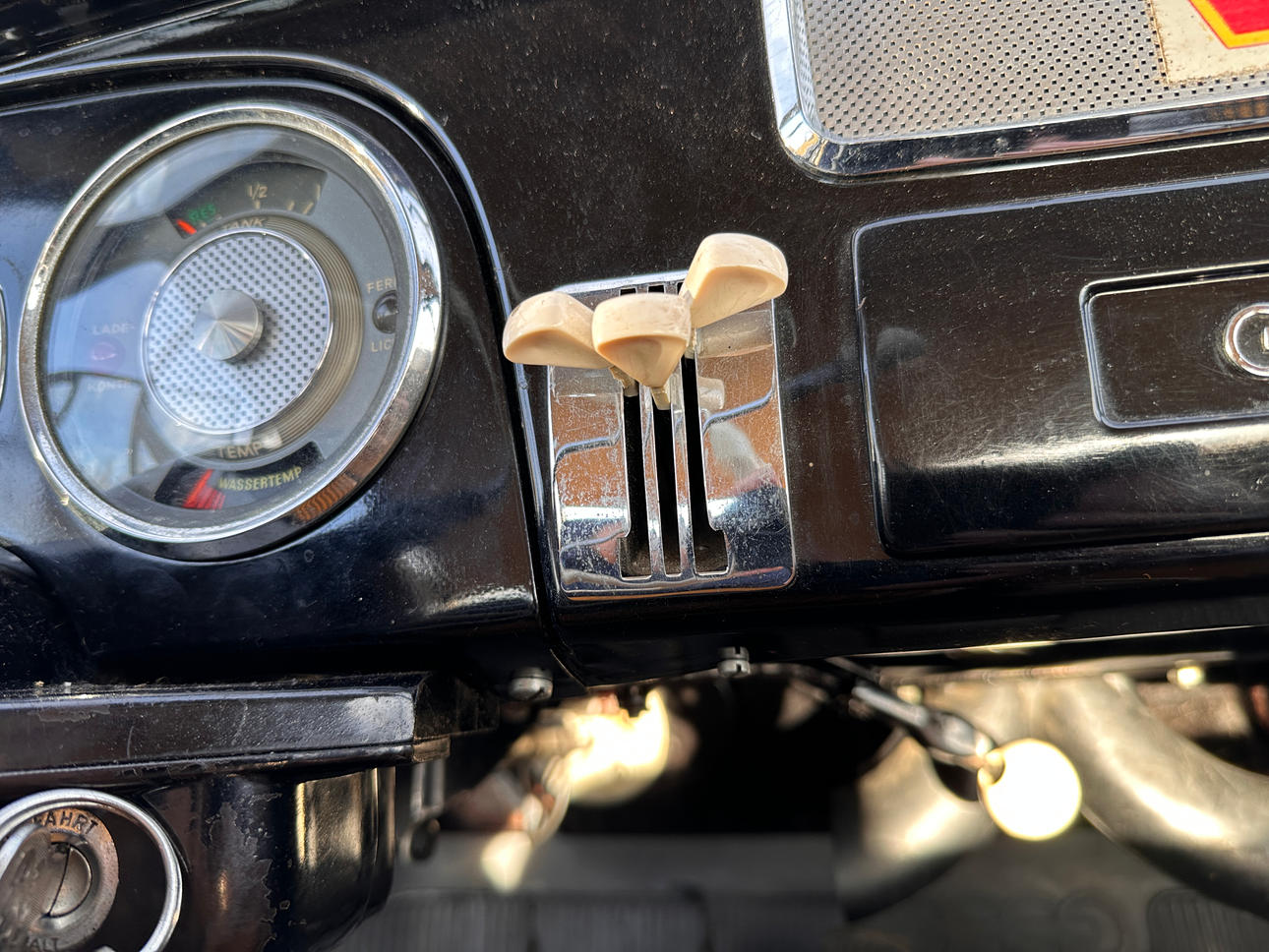 Farbe: Schwarz lackiertes Gehäuse, wahrscheinlich nicht neu lackiert, da Sie die Aufkleber von der Verkaufsstelle immer noch auf der Karosserie sehen können. Auch verchromte Details.