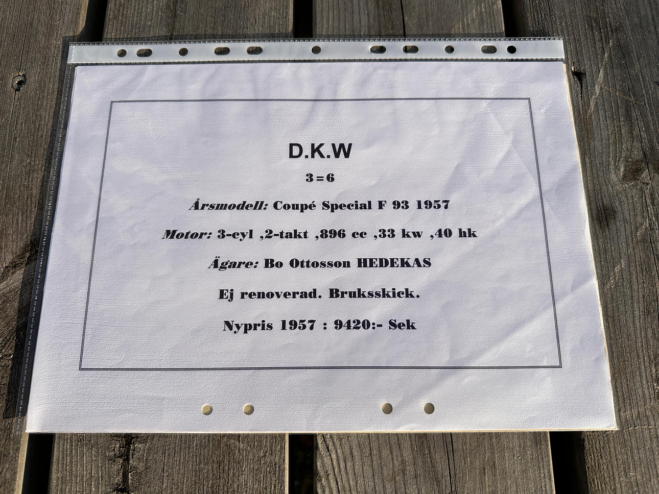 Das Auto gibt es schon, seit es neu war. Es wurde von einer Frau, die ein Geschäft in Medbön betrieb, als neu gekauft.