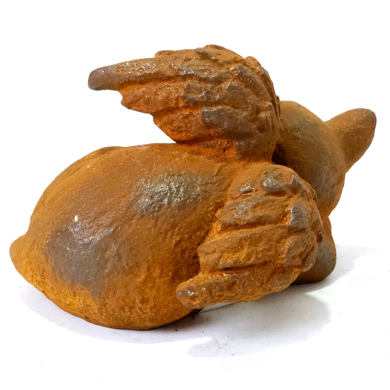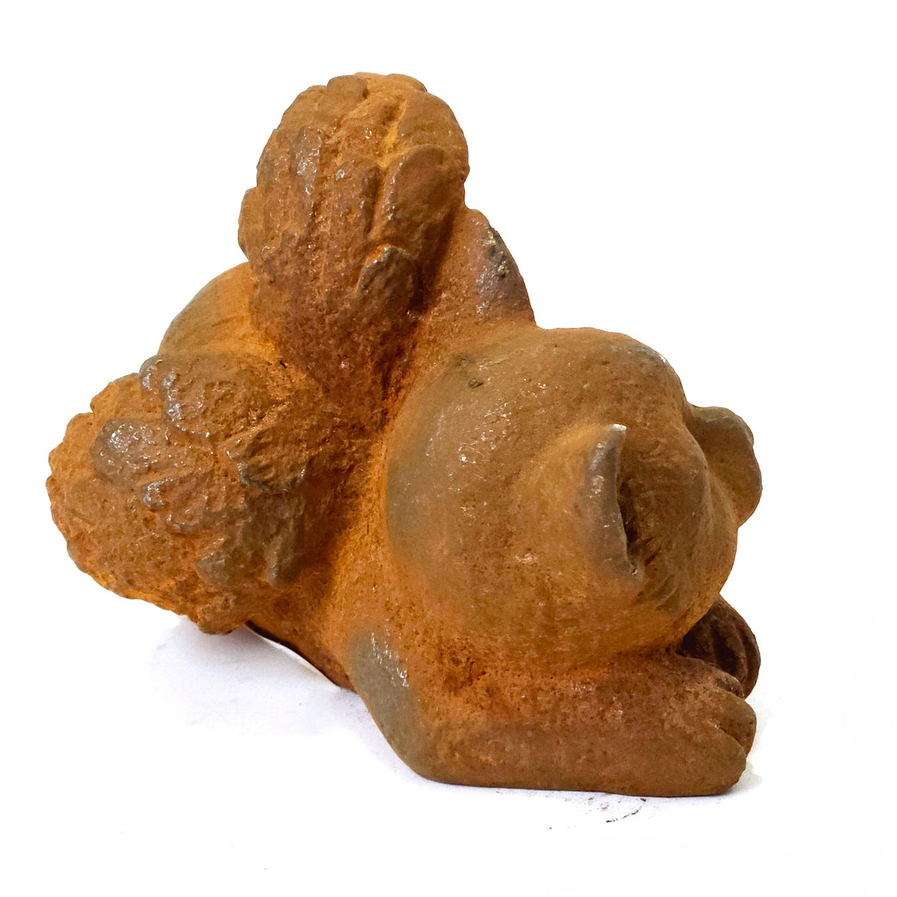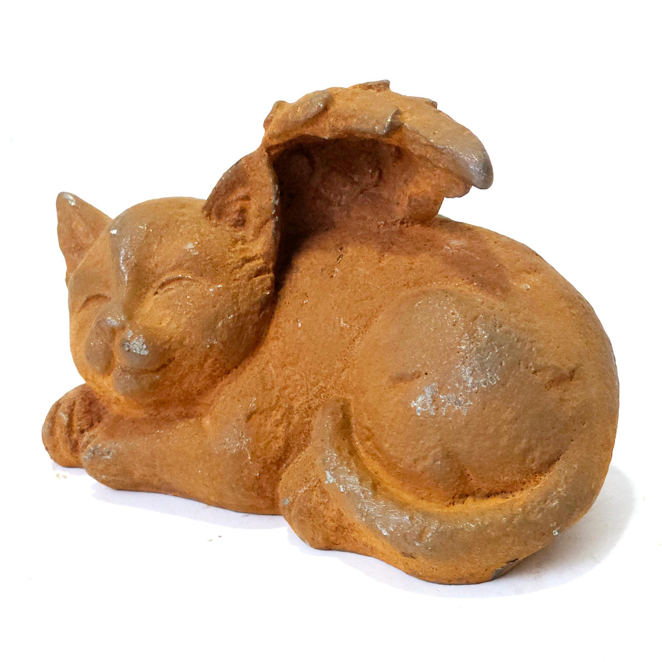 FIGUR EINER KATZE MIT FLÜGELN AUS EISEN.