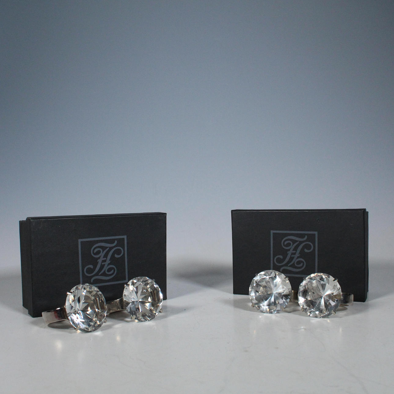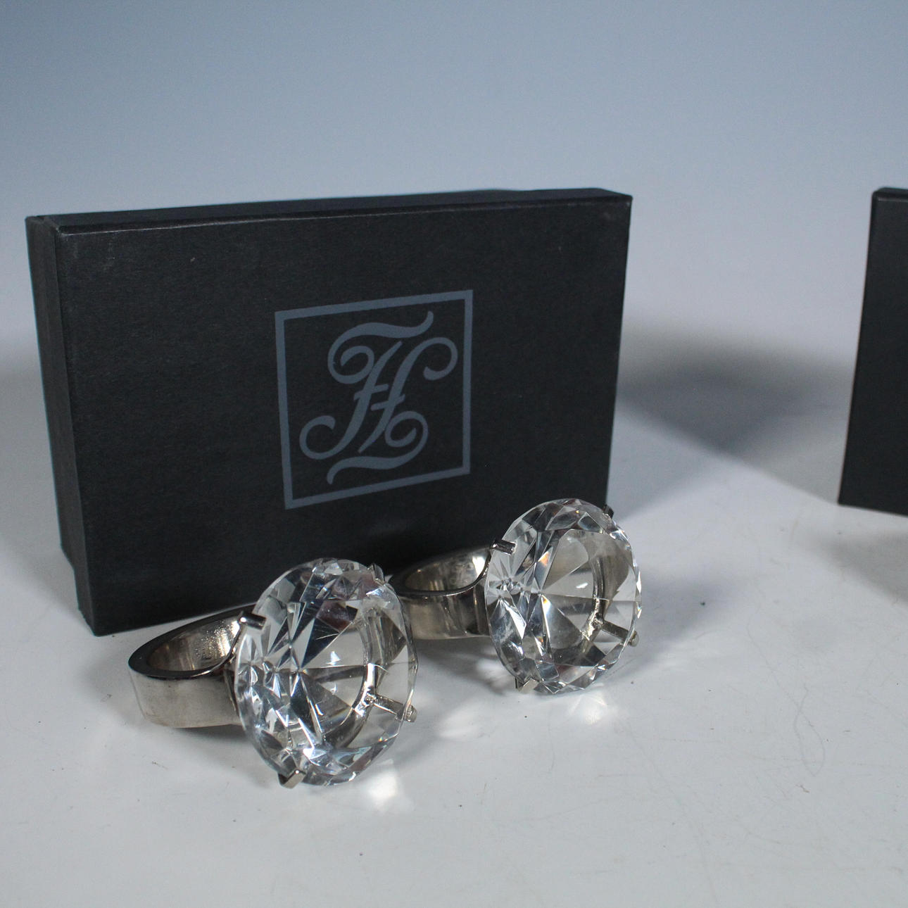 Fink, 4 Serviettenringe, Stahl, Glas.
