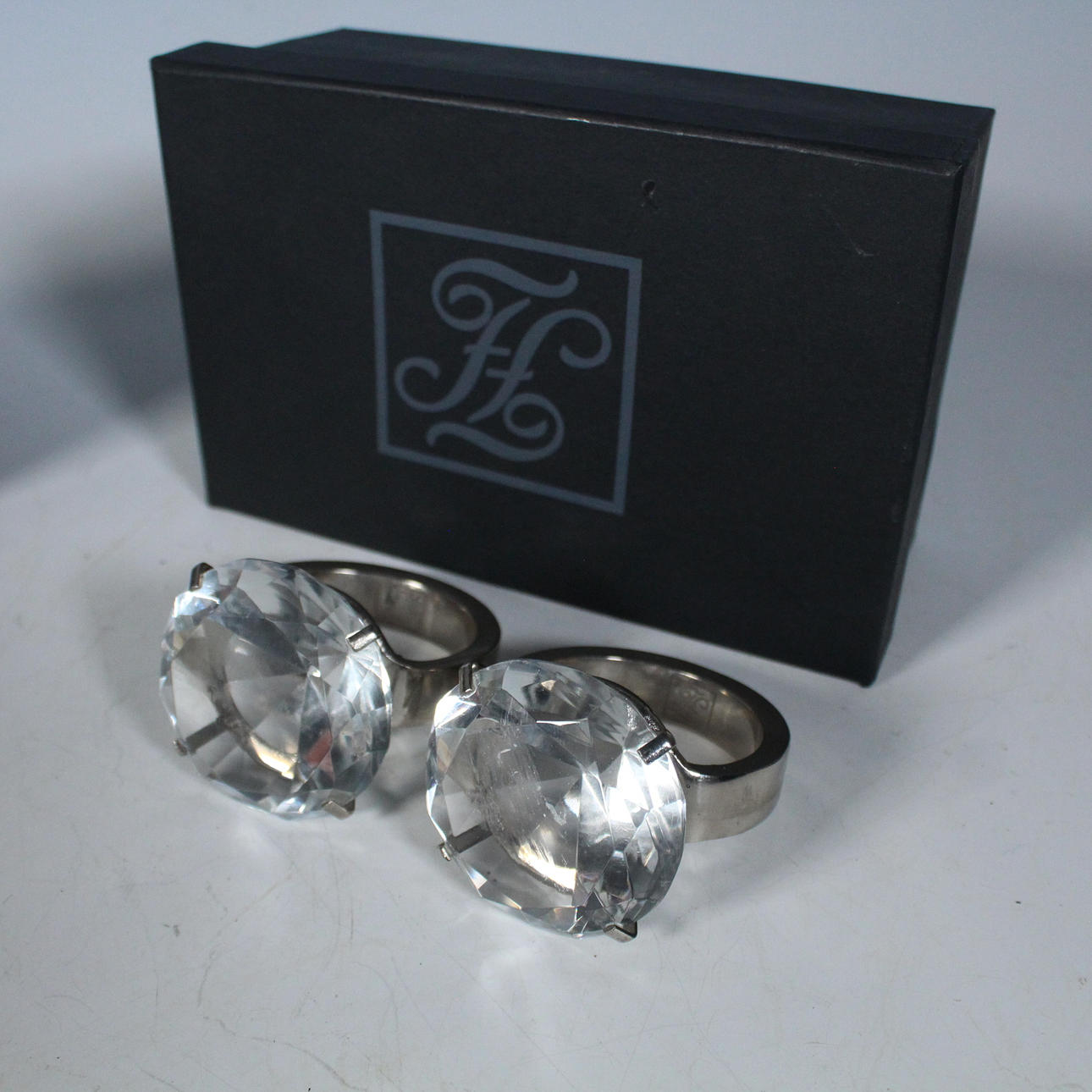 FINK. 4 Serviettenringe, Stahl, Glas.