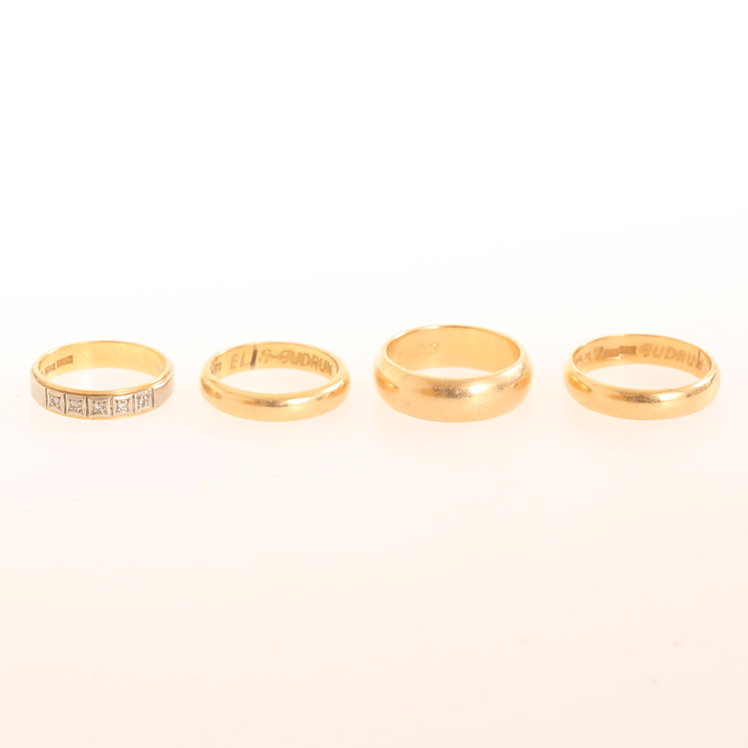 3826775. Ringe, 4 Stück, 18 Karat Gold.