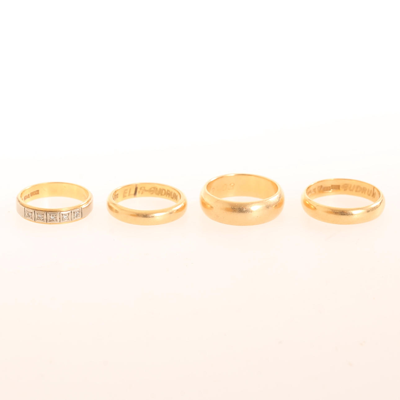 Ringe, 4 Stück, 18 Karat Gold.