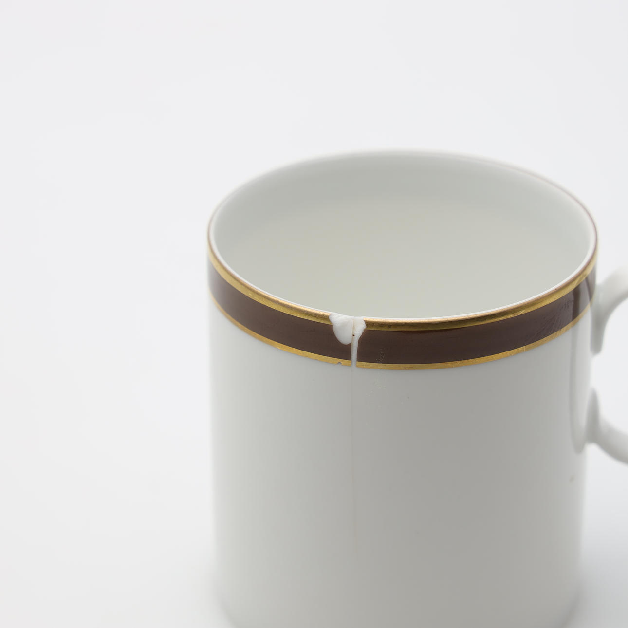 Verschleiß und Abnutzung. Bei einer Tasse wurde ein Nagel festgestellt.