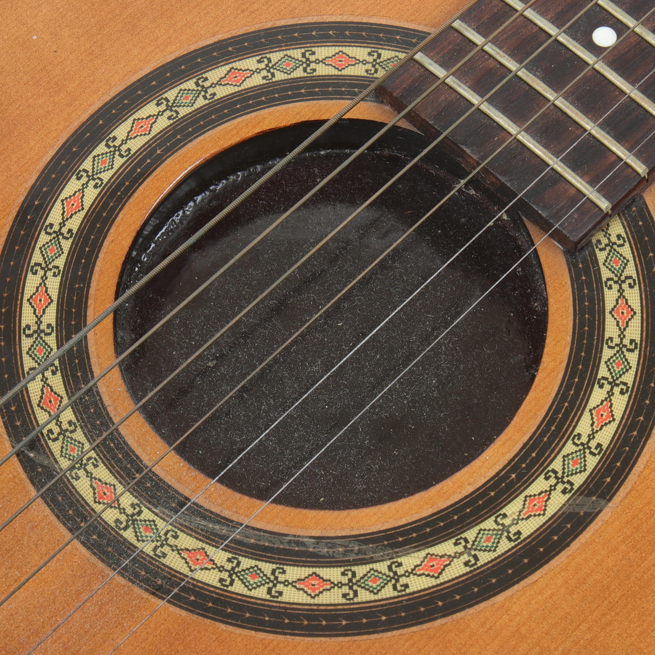 GITARRE, unbekannte Marke, akustisch mit eingebautem Mikrofon.