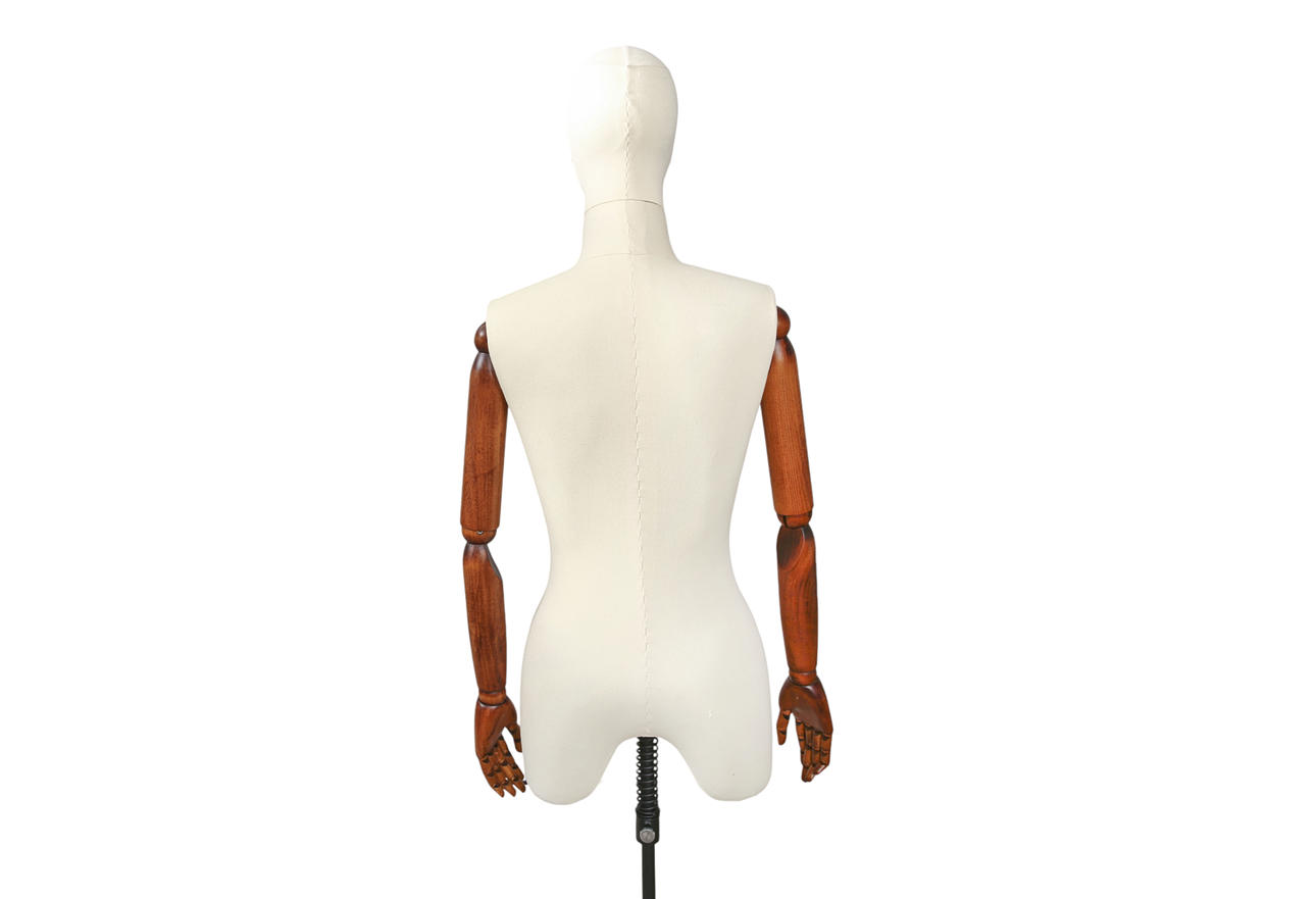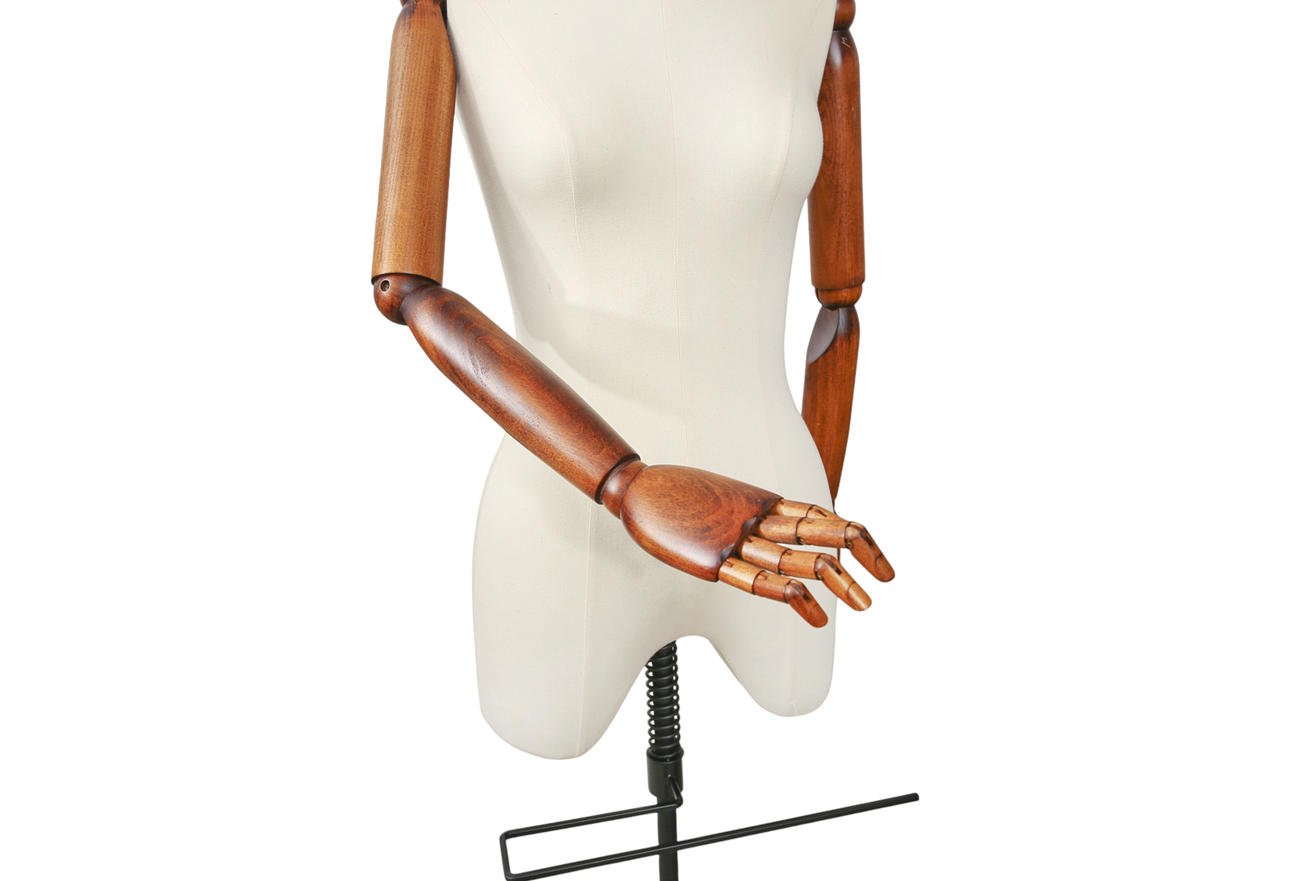 Mannequin, 187 cm, auf einem rollbaren Gusseisensockel. Arme und Finger artikulierbar.