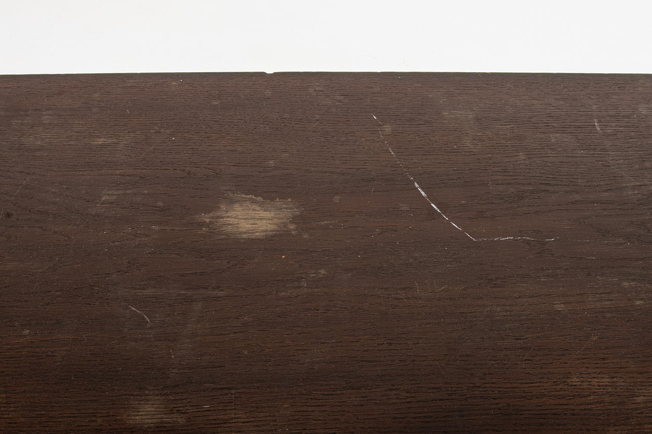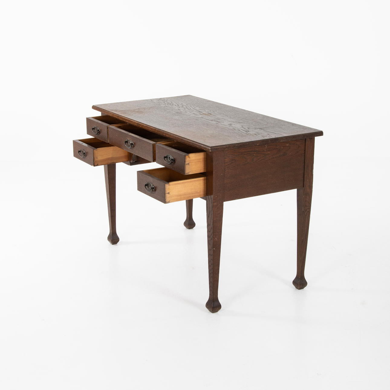 Schreibtisch, Eiche, Schubladen mit Metallgriffen. Schloss, Schlüssel. Schweden der erste Teil des 20. Jahrhunderts.