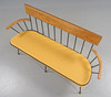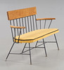 Stahlrohr, Armlehnen und Rückenlehne aus Eiche, Fußmanschetten aus Messing.