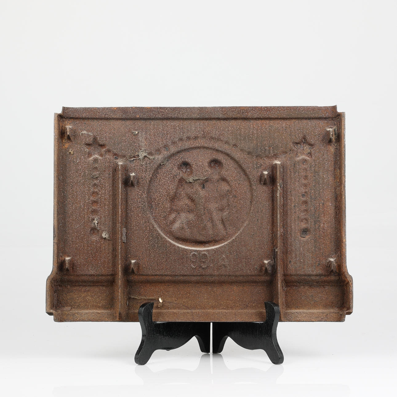 3842564. 2 gusseiserne Ofenplatten, 20. Jahrhundert.
