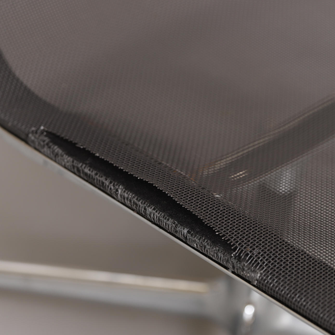 Eine matt polierte mit Rahmen, eine polierte ohne Rahmen. Sitzschale als Reaktion und graphitgrauer Stoff. Vierteiliger Drehfuß. Breite 51 bzw. 58, Höhe 82 cm.