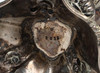 Die Schale gehört wahrscheinlich dazu, leichte Biegung in der versilberten Plattform, die die Teller trägt.