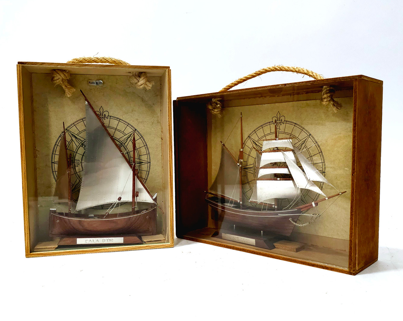 3857287. ZWEI BOOTE AUS HOLZ UND STERLINGSILBER.