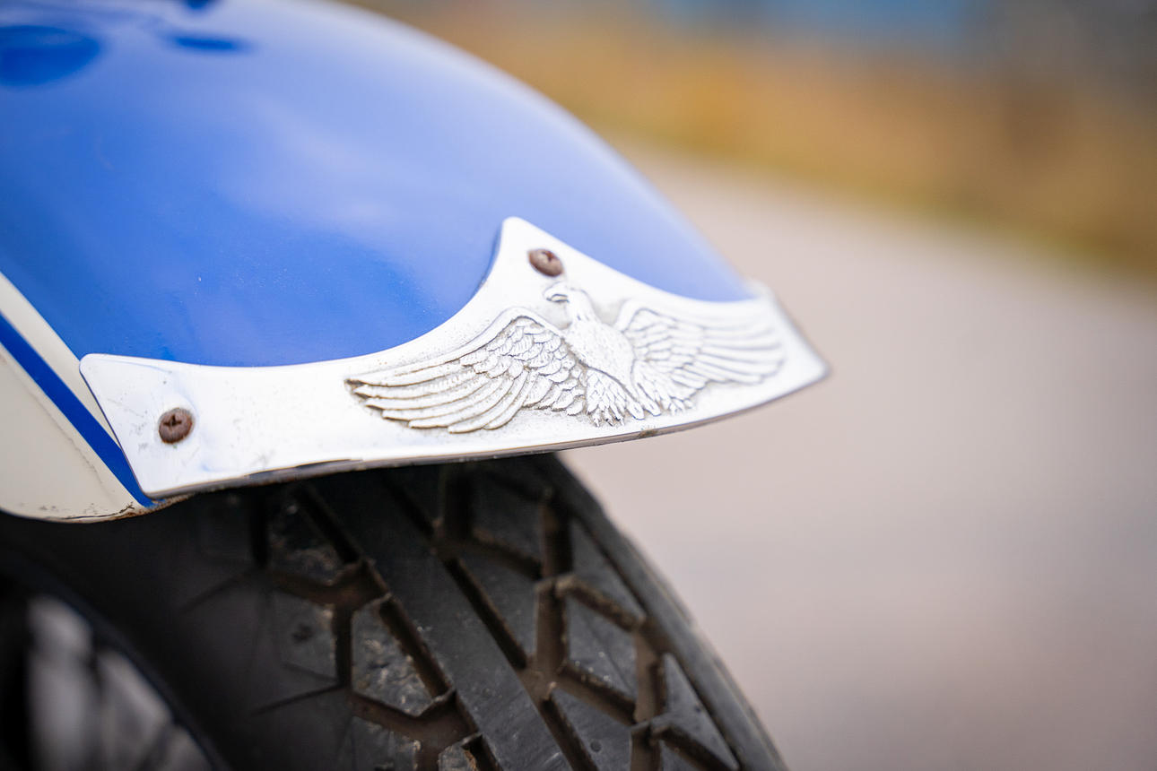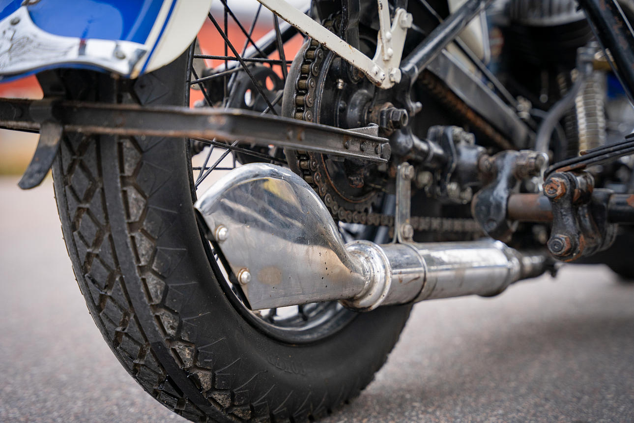 Zu den verschiedenen losen Ersatzteilen gehören 2 Reifen für Beiwagen, Reserveradhalterung, Fallbögen usw.