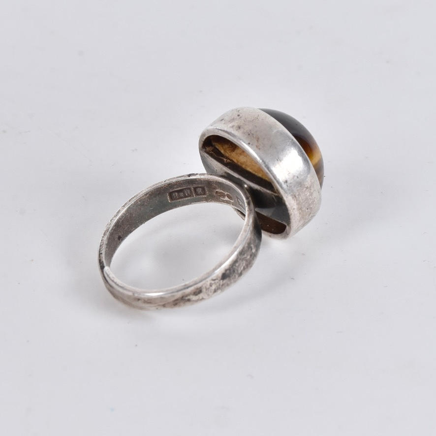 3861635. SILBERRING MIT TIGERAUGE, 20. Jahrhundert.