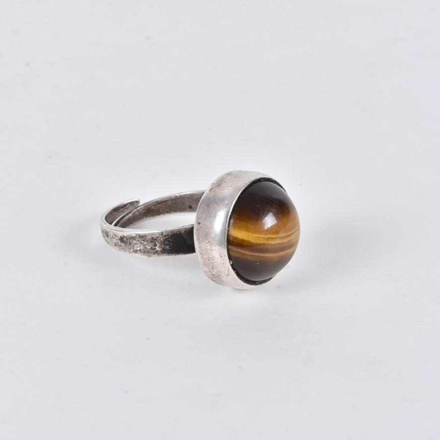 SILBERRING MIT TIGERAUGE, 20. Jahrhundert.