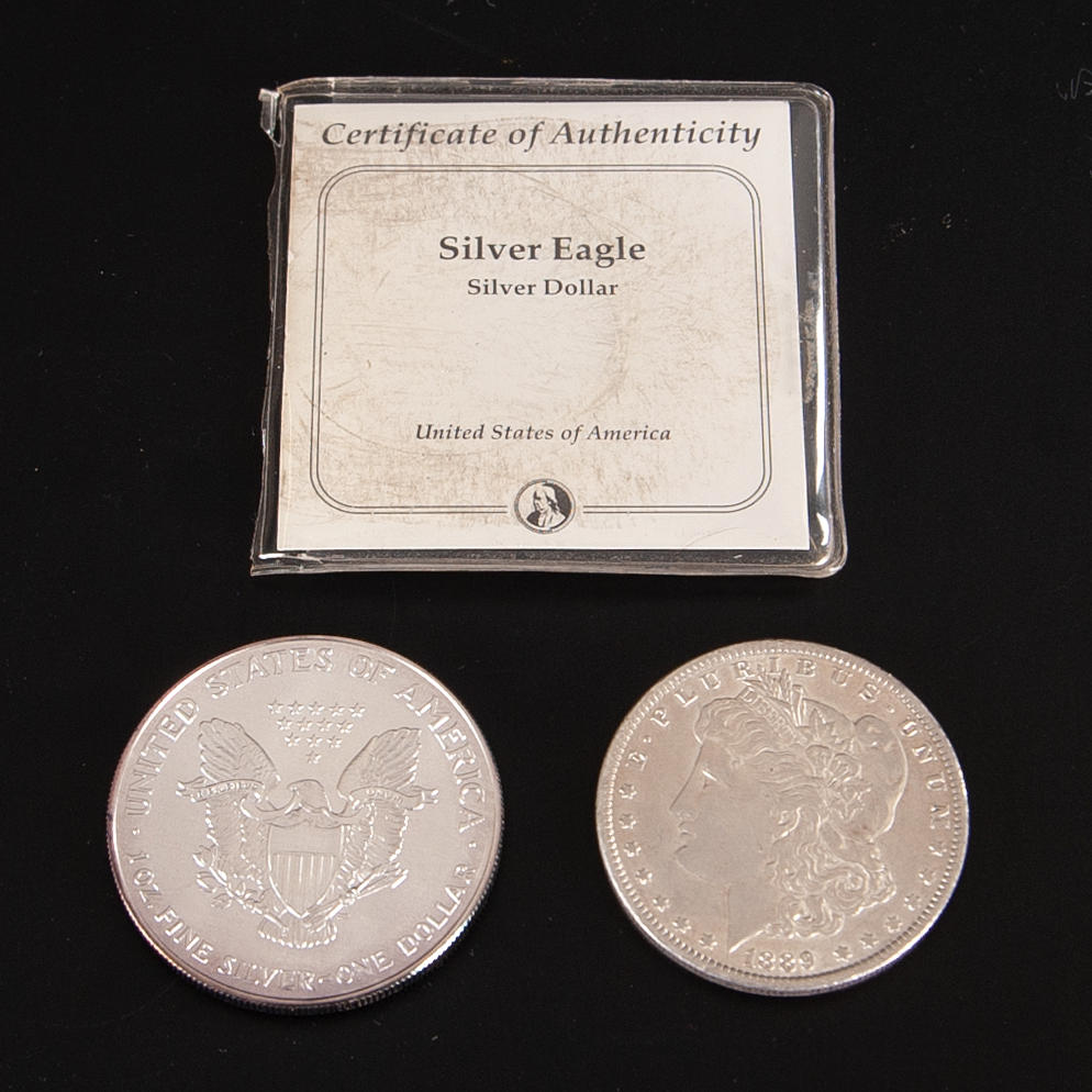 1 SILBERDOLLAR, 2 MORGENDOLLAR 1889 UND LIBERTY-DOLLAR 1995.