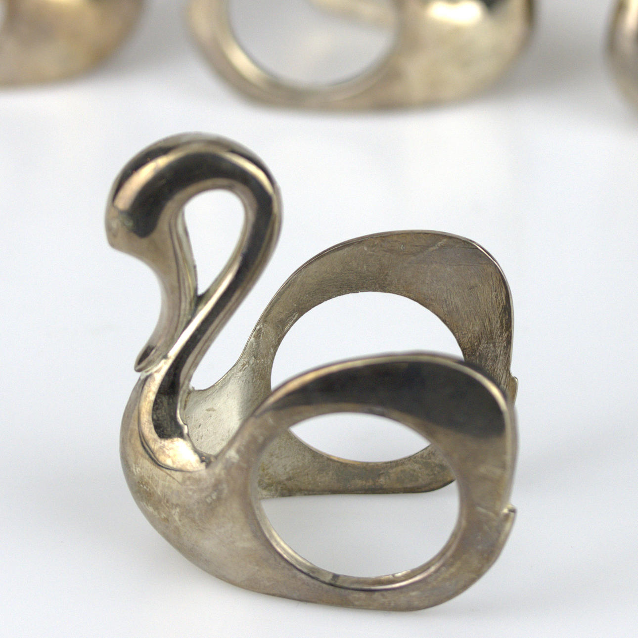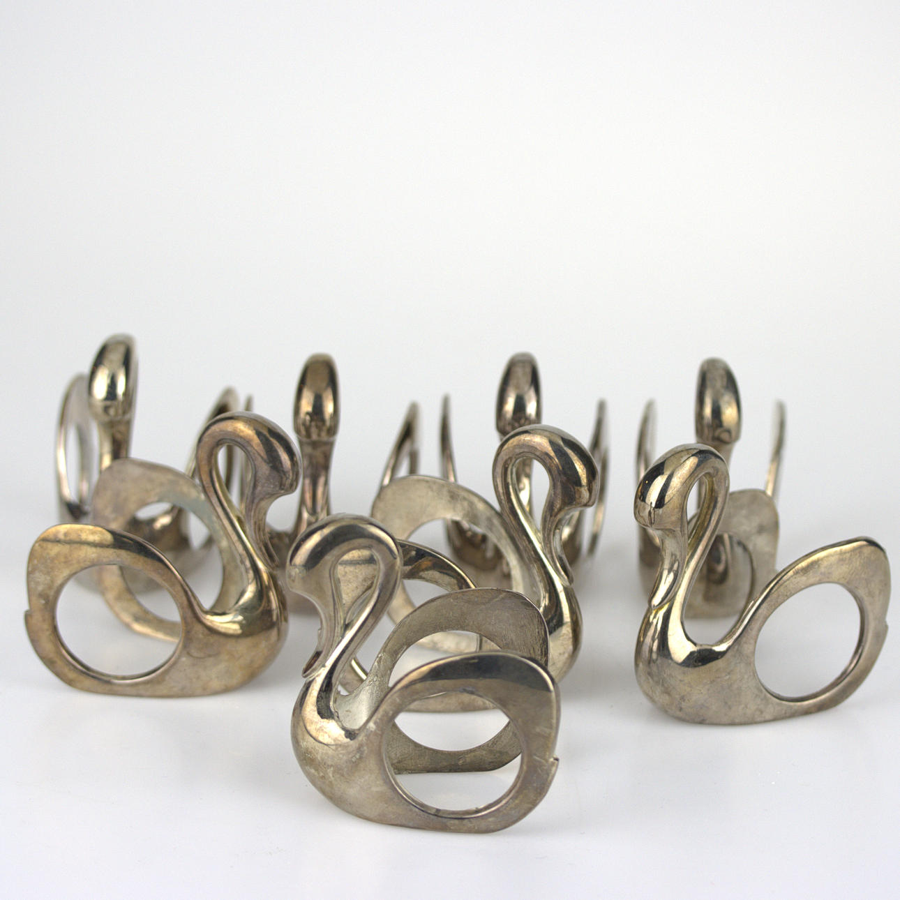 3864974. SERVIETTENRINGE, 8 Stück, Schwäne, Metall, modern.