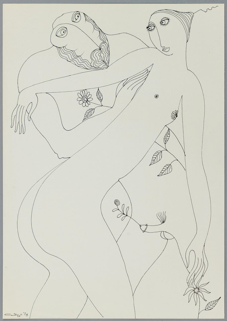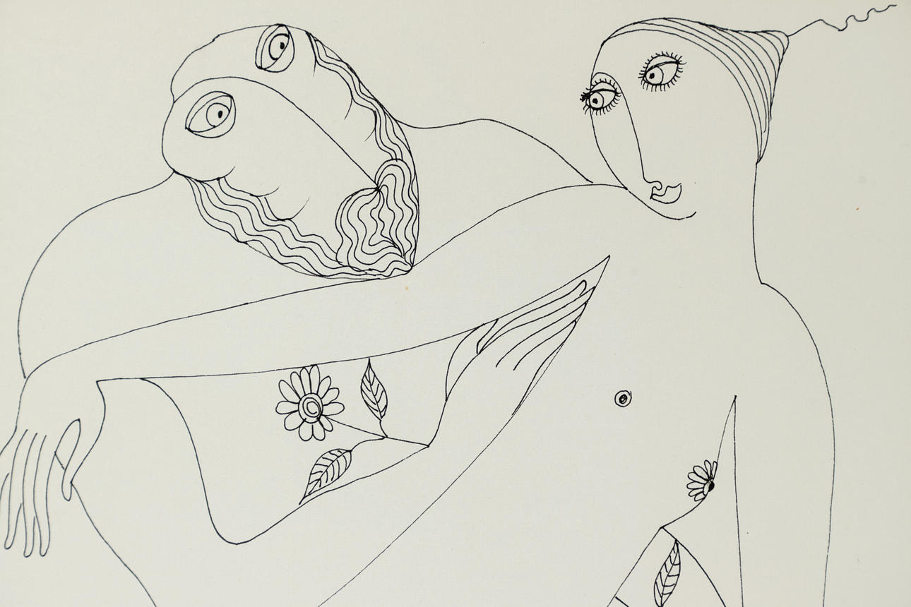 Vadim Abramovich Sidur (1924-1986), Liebespaar, Federzeichnung, 1979, kyrillisch signiert und datiert, ca. 42 x 29,5 cm (Blattformat).