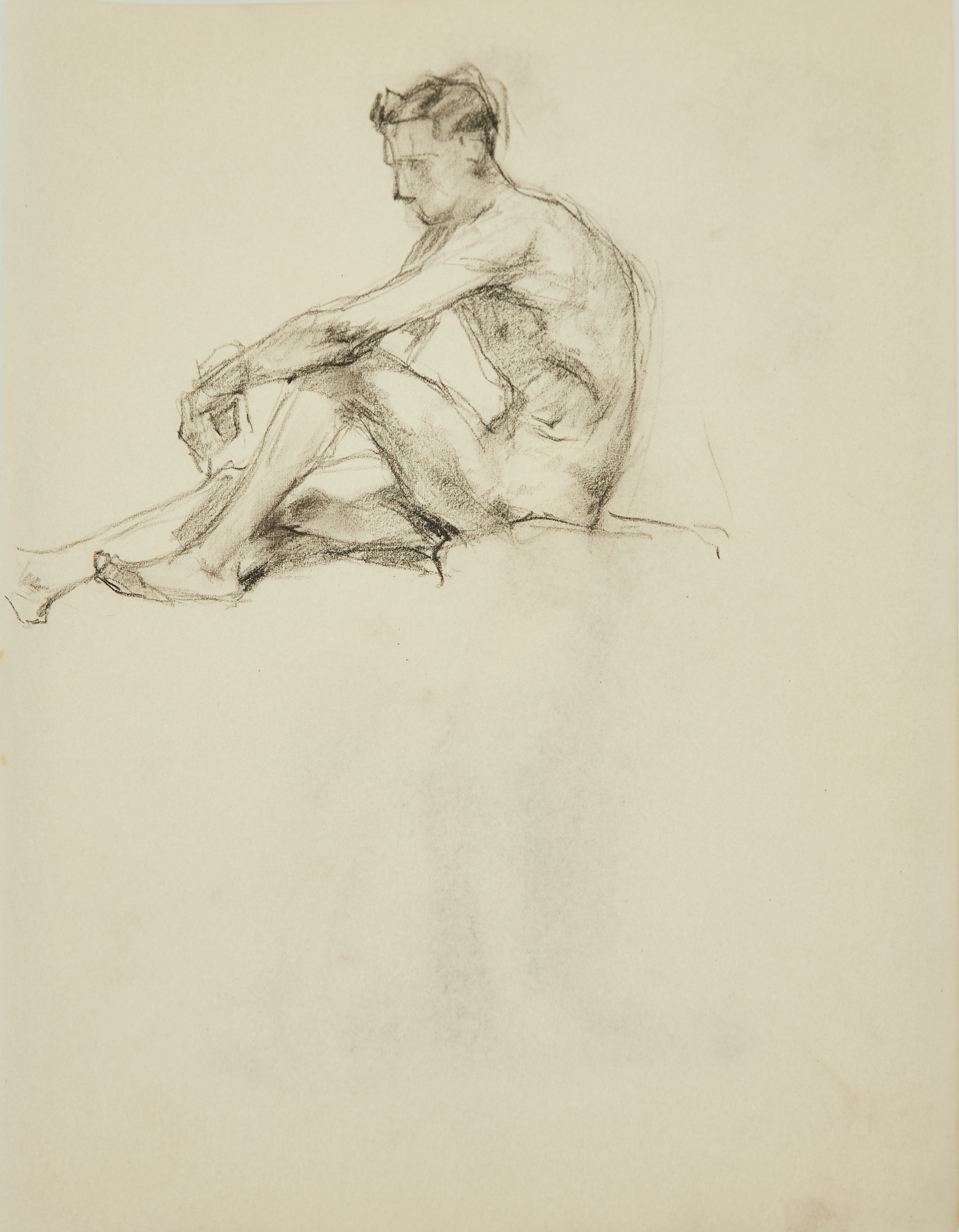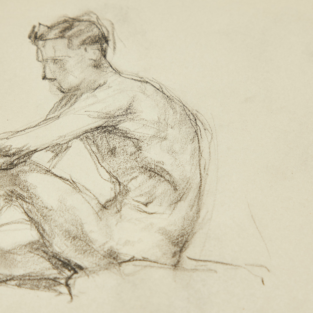 3873251. UNBEKANNTE*R KÜNSTLER*IN. Sitzender Männerakt.