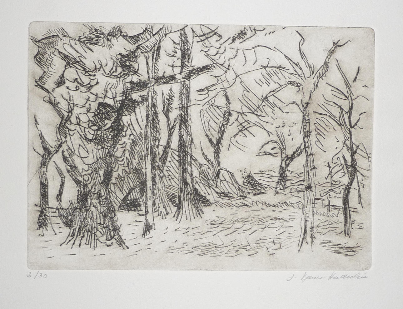 (Bamberg 1922-2006 ebd.) Eine Radierung, 3/30, montiert in Klappkarte mit Wünschen zum 60. Geburtstag, drei Holzschnitte, eine davon handkoloriert. Alle rechts unten handsigniert. 18,7 x 24 cm und 3x 25 x 33 cm (Blatt). - Lit. Saur AKL 7.