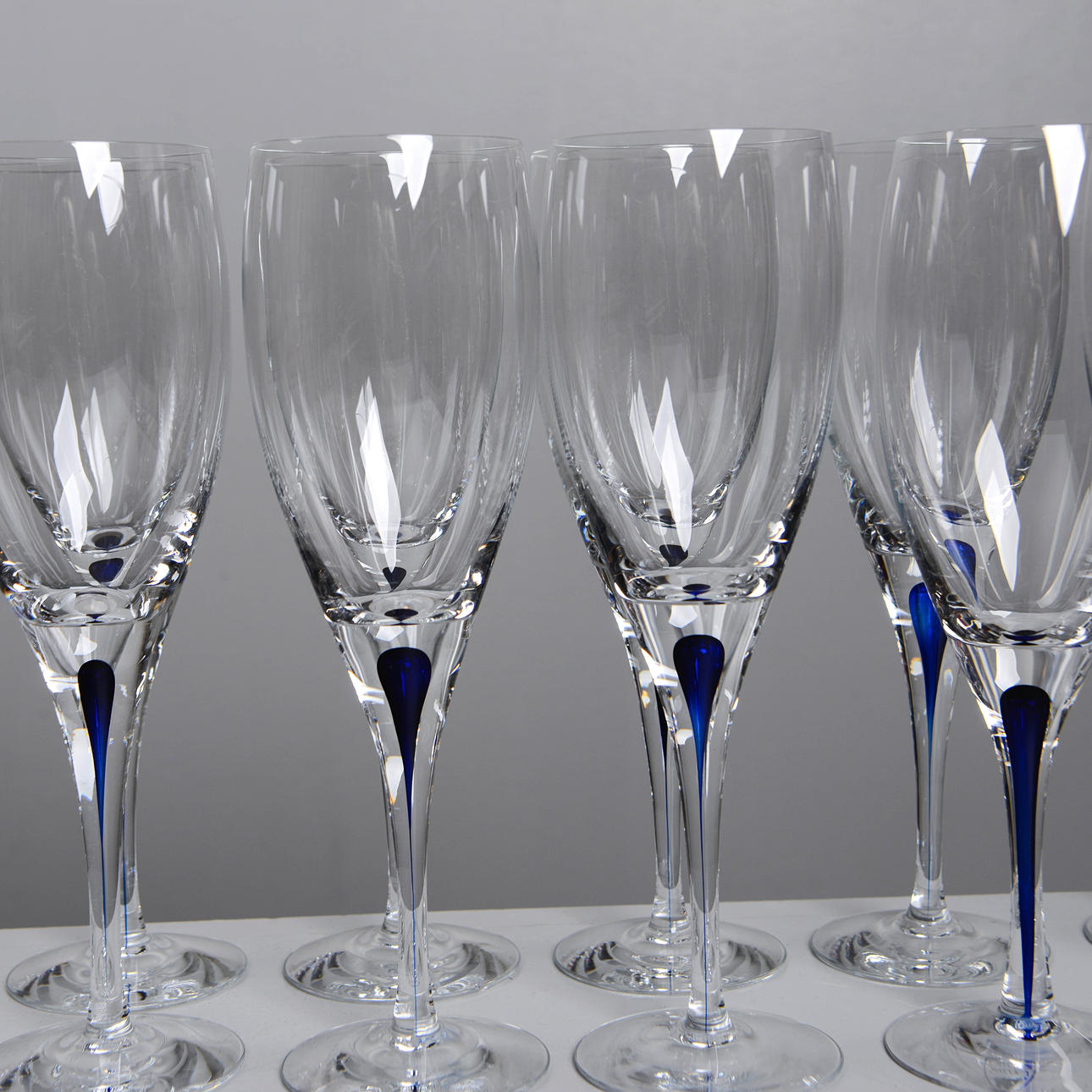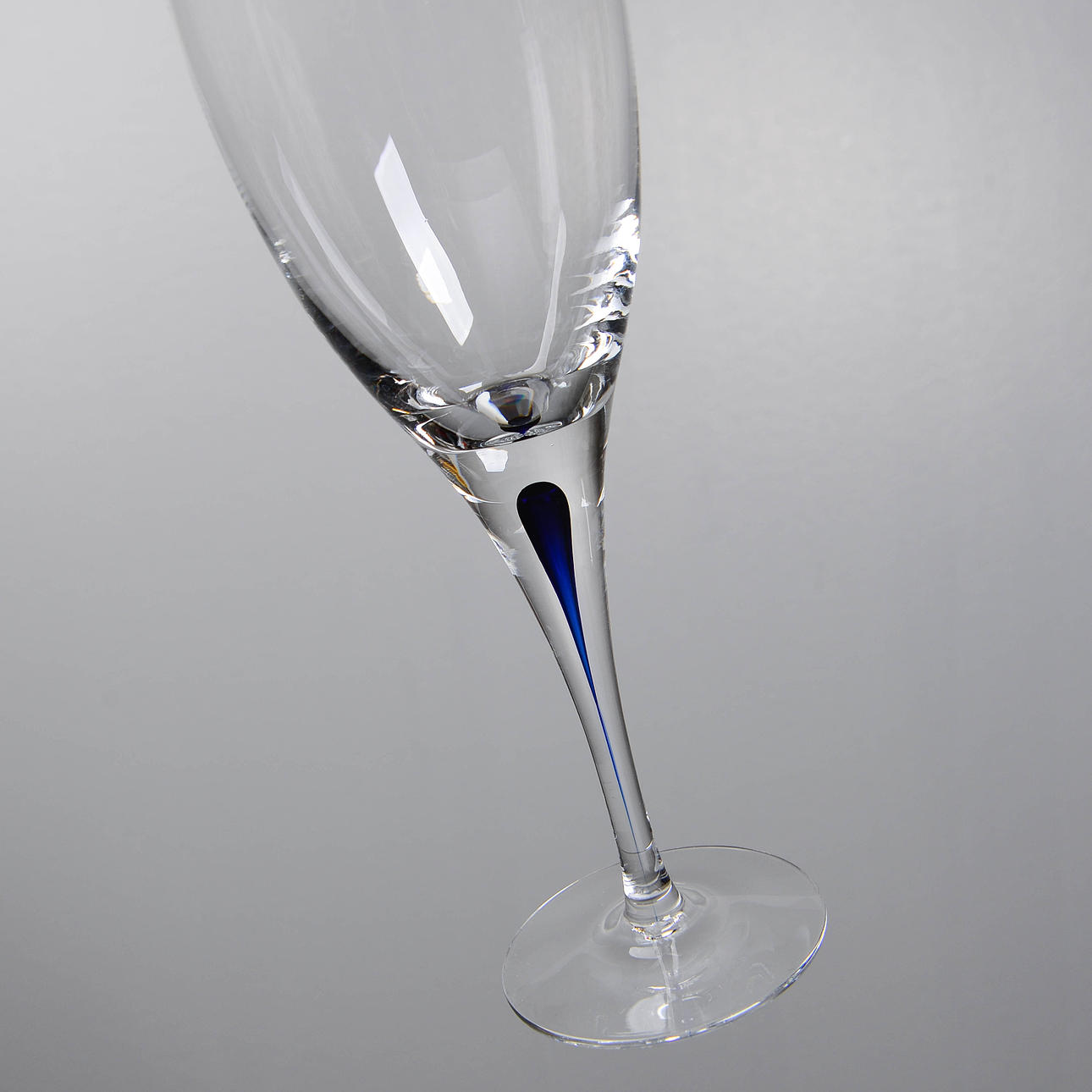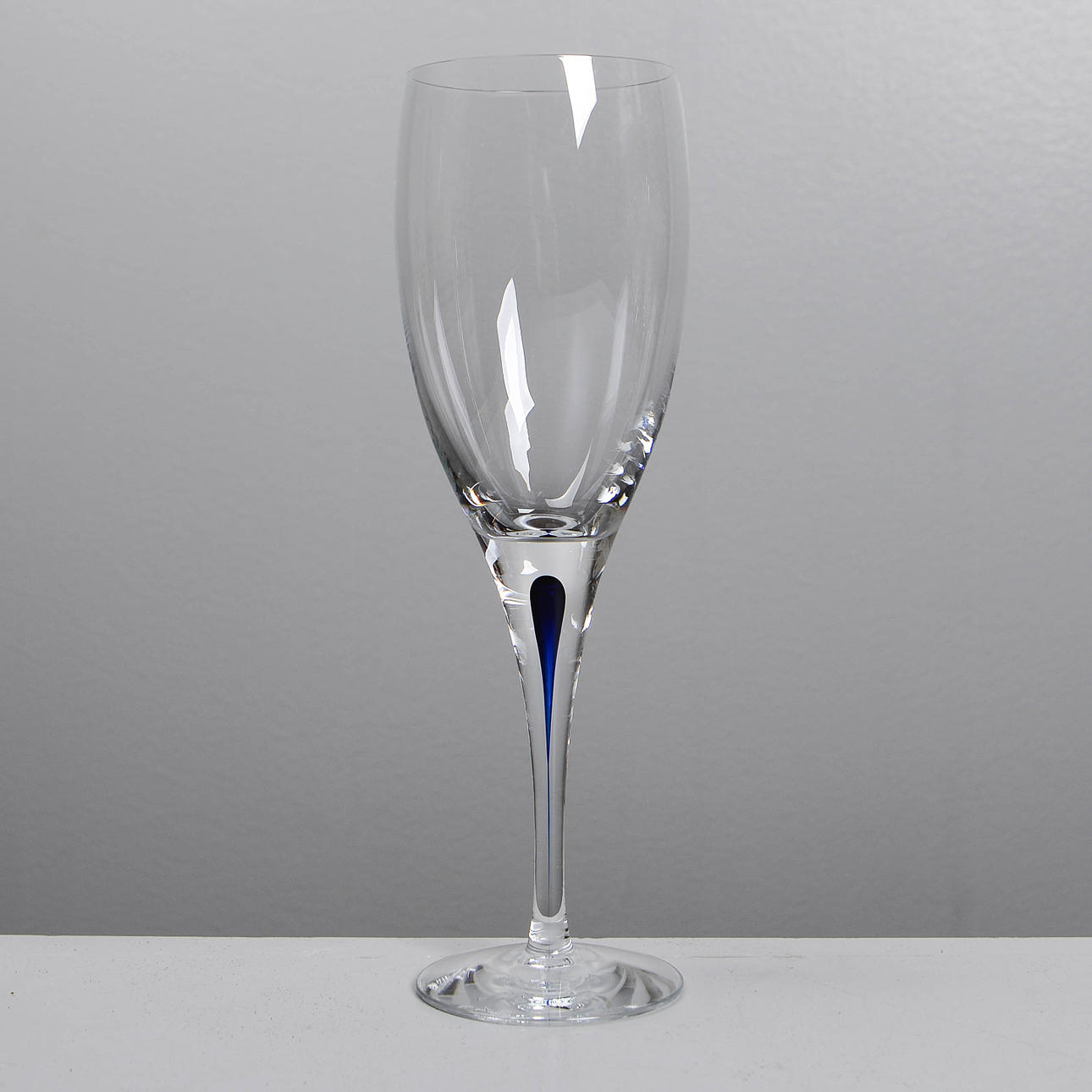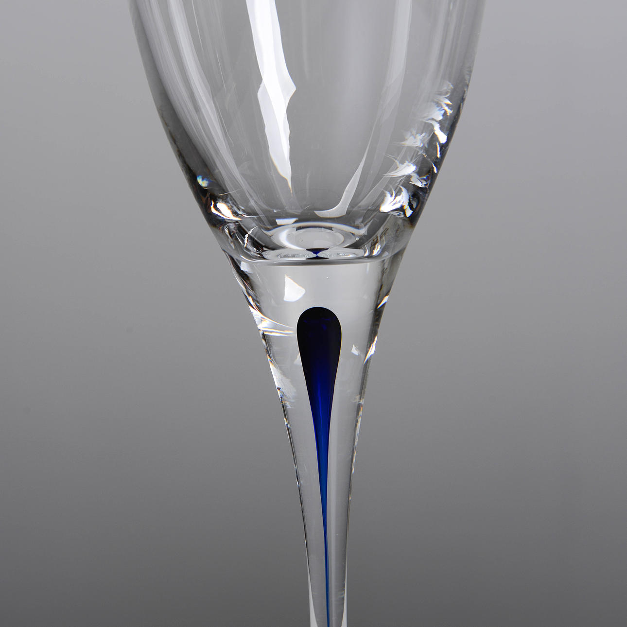 Die Intermezzo-Serie zeichnet sich durch schlichte Eleganz und verspielte Details aus. Das charakteristischste Merkmal ist das einzigartige blaue Tröpfchen, das sich in jedem Glas befindet. Der Tropfen steht für eine künstlerische Pause oder ein musikalisches Intermezzo, das dem Glas einen subtilen Farbakzent verleiht und das visuelle Interesse am Glas weckt.