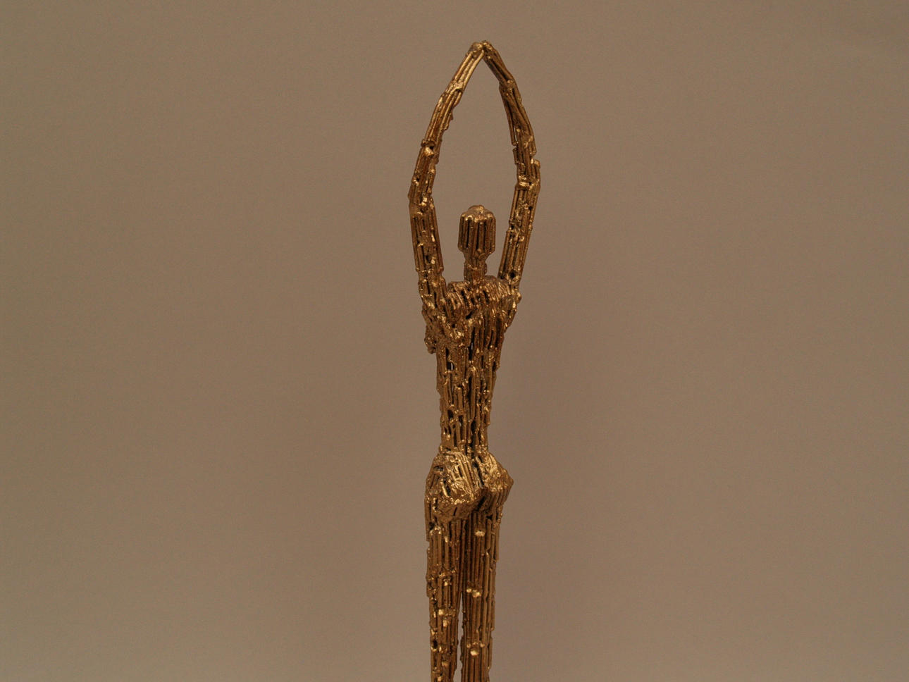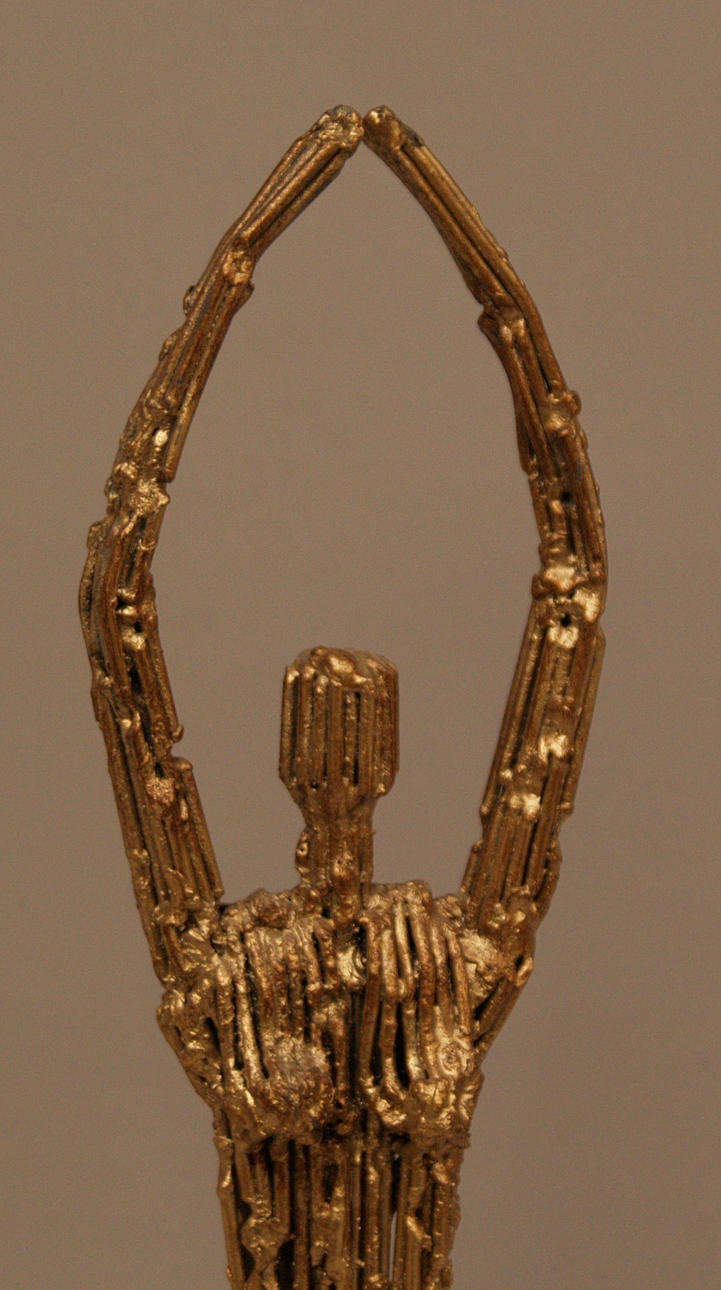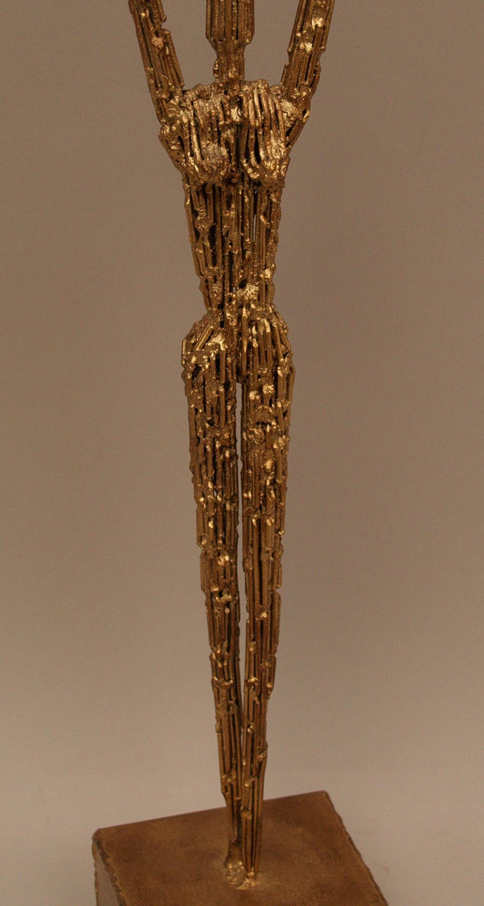 Stilisierter weiblicher Akt- Metall, goldfarben, stark strukturiert, auf Sockel montiert, H.: 49,5cm.