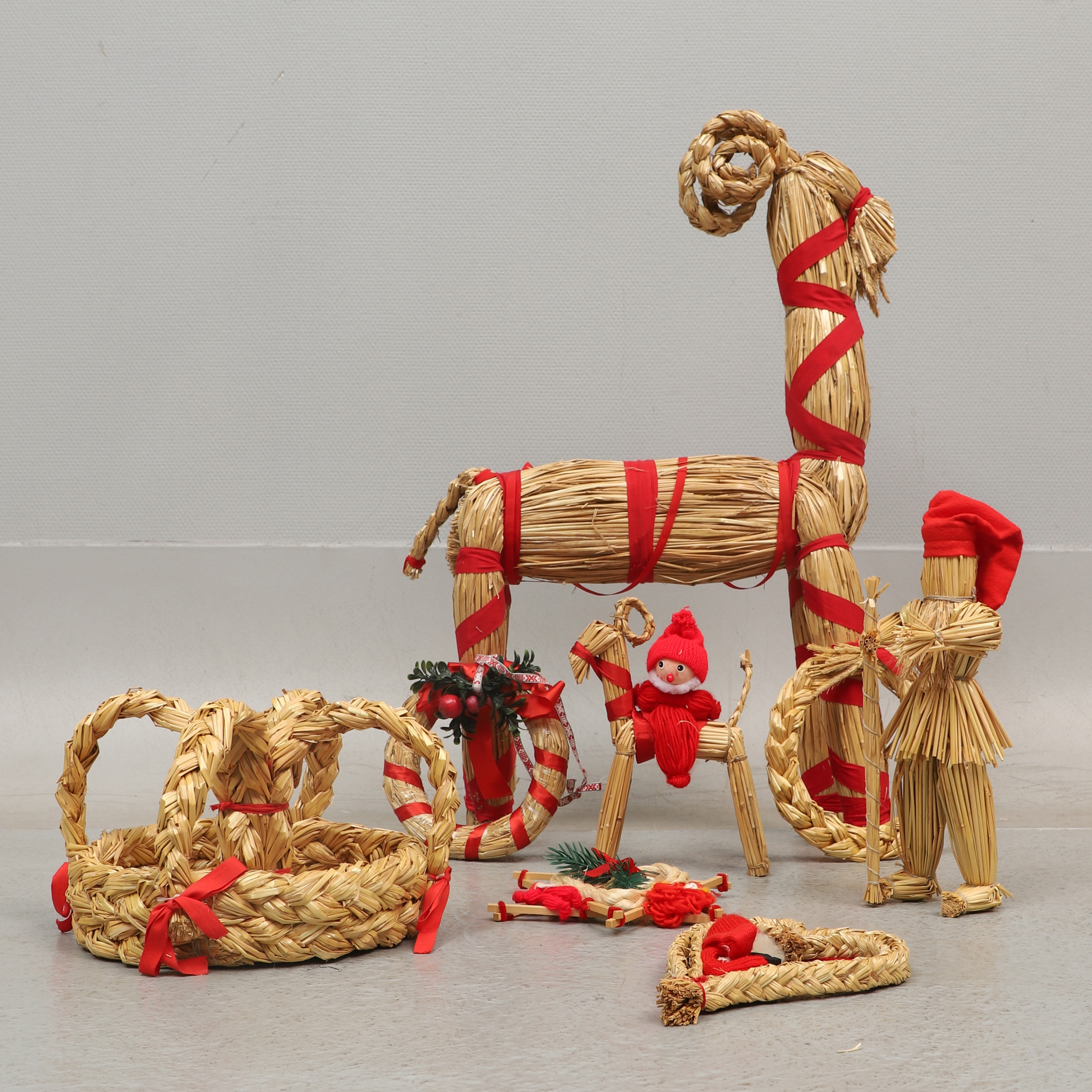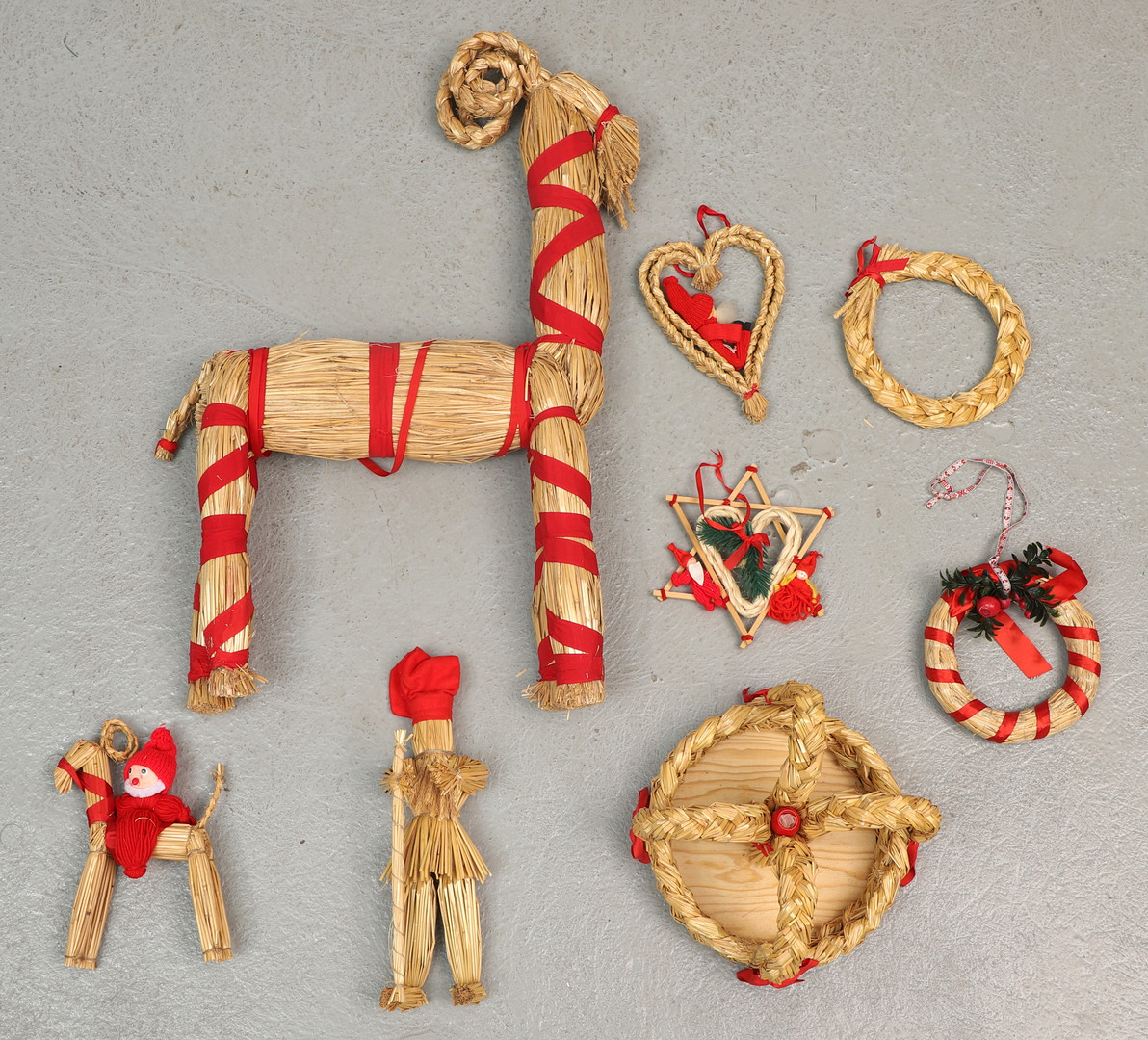 3884407. WEIHNACHTSSCHMUCK, 8 Stück, hauptsächlich Stroh.