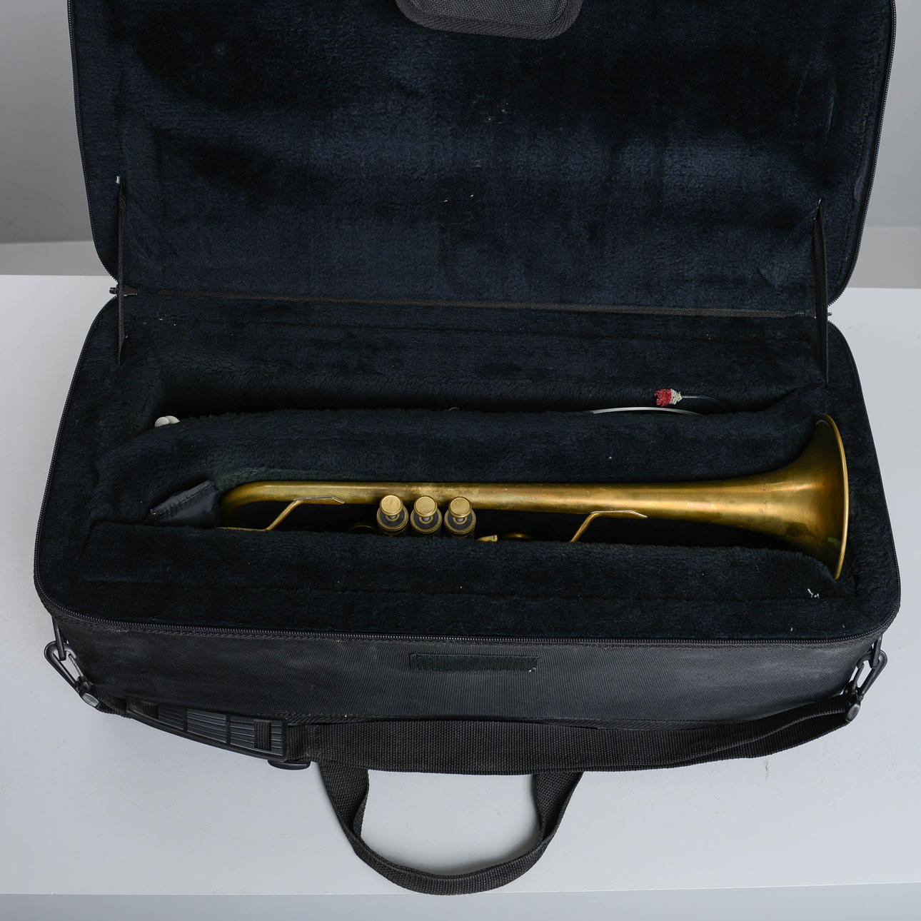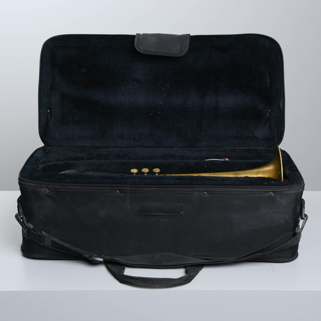 Messing und Weißmetall. Mit dazugehöriger Tasche und Zubehör. Länge 52 cm.