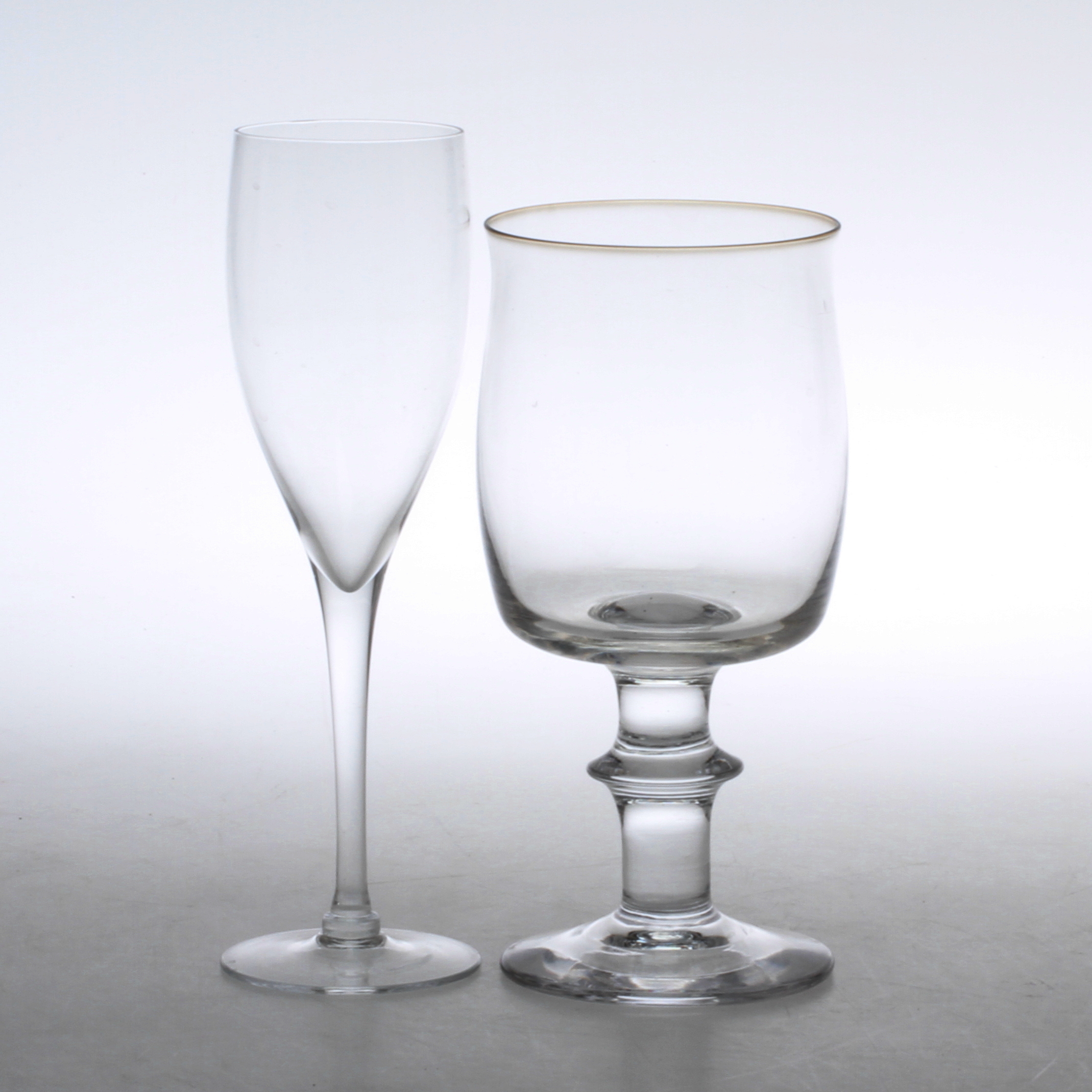 390329. GLAS, 4 + 4 Stück, "Trompete" und "Chateau", Bertil Vallien.