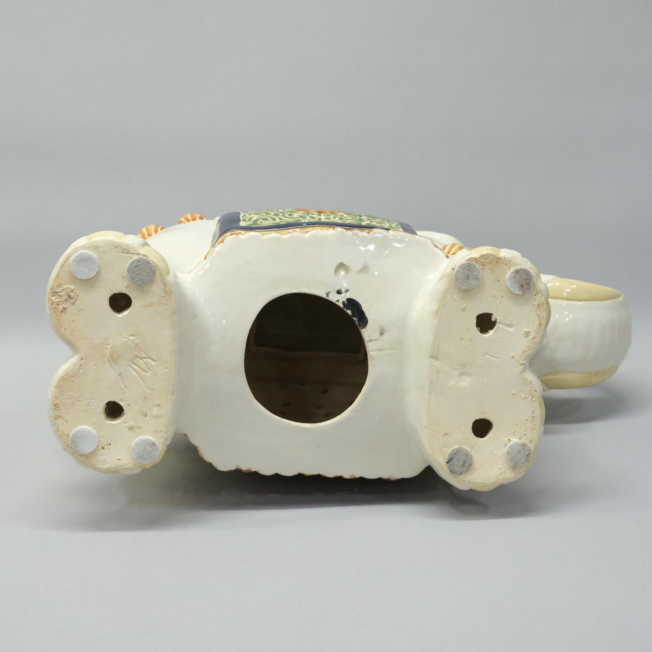 Polychrom glasierte Keramik, mit Teilrelief und durchbrochenem Dekor.