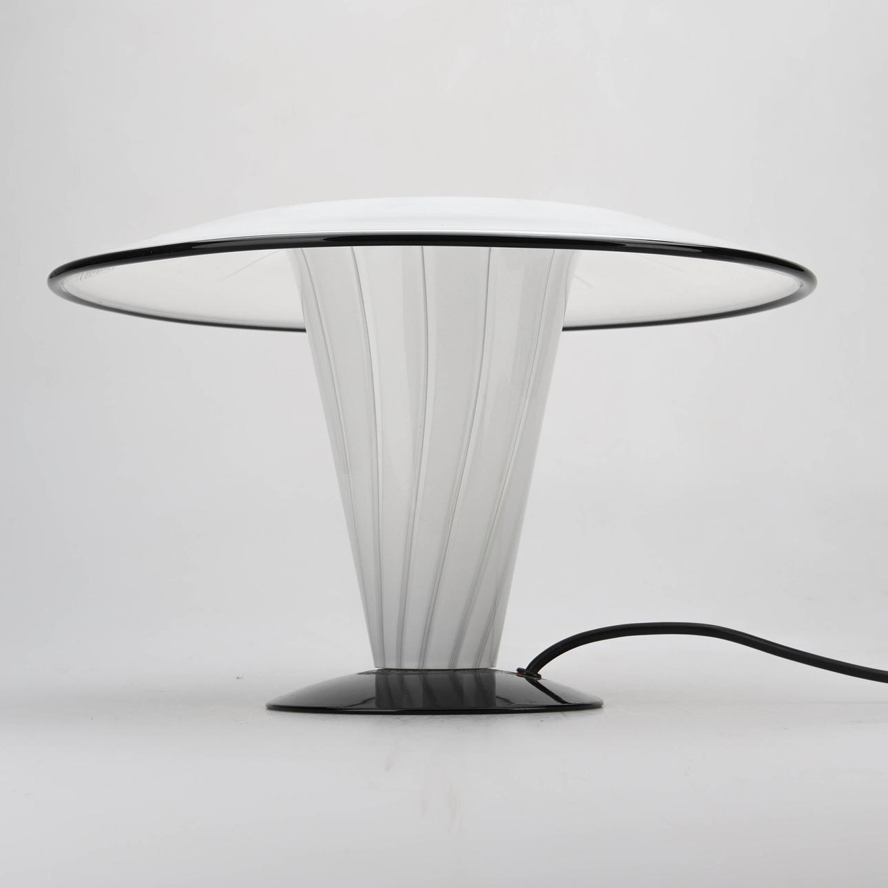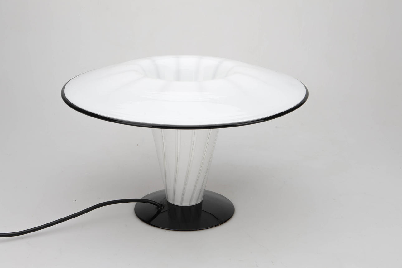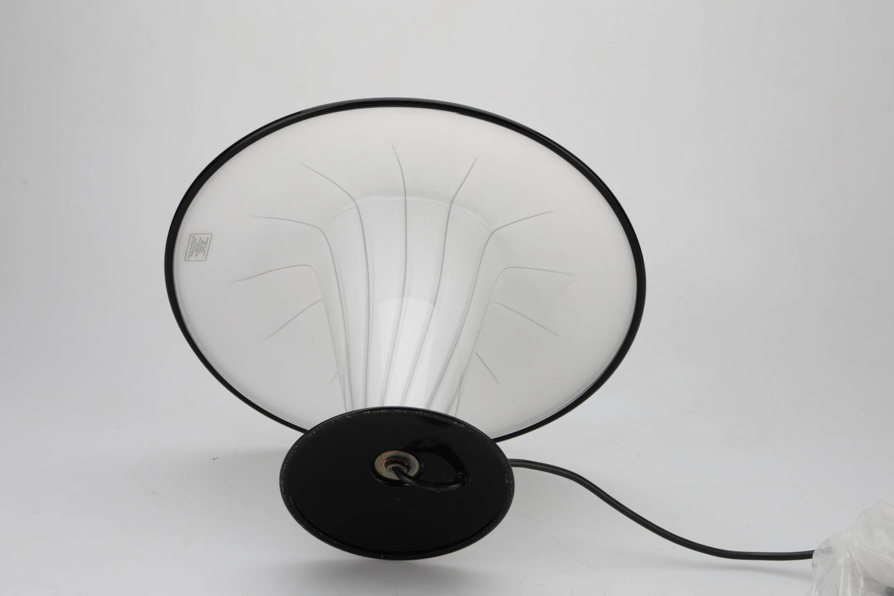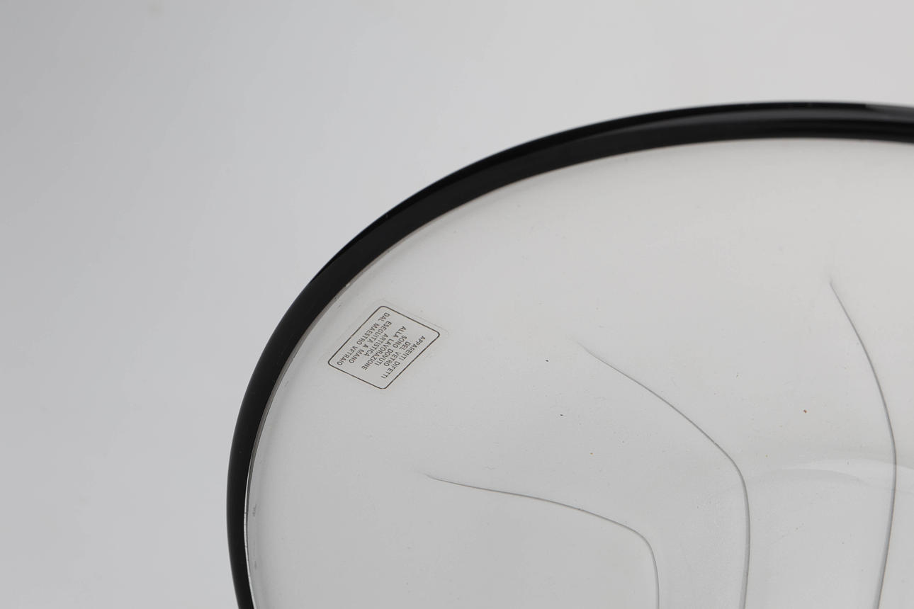 Etikett mit der Aufschrift „Offensichtliche Mängel am Glas sind auf die künstlerische Ausführung durch den Glasmacher von Hand zurückzuführen“ auf Italienisch.