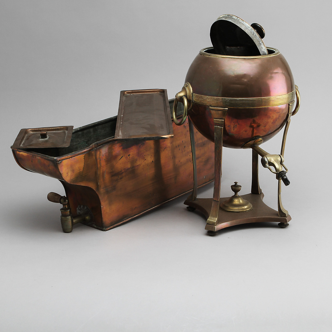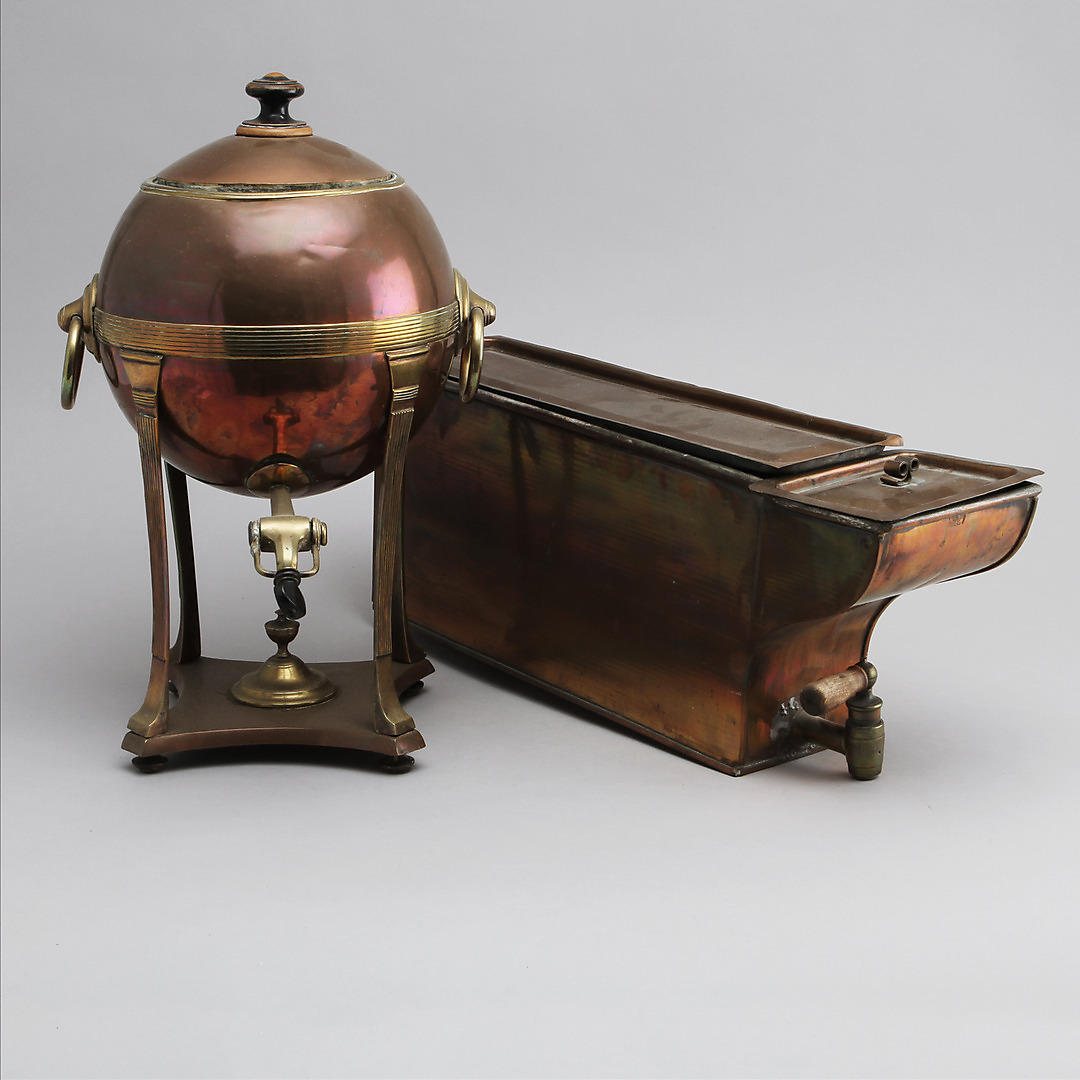 390671. TEKANNE und WASSERBEHÄLTER, Kupfer, 19./20. Jahrhundert.