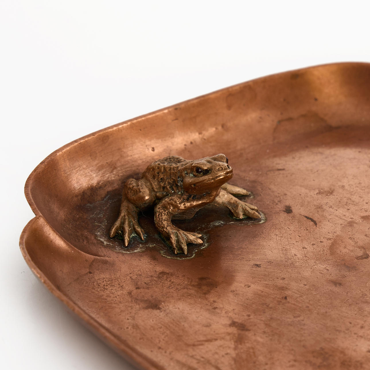 Ein japanisiertes Tablett, Gorham, Birmingham, England, später Teil des 19. Jahrhunderts. Kupfer mit Frosch-, Echsen- und Krötendekor aus Messing.