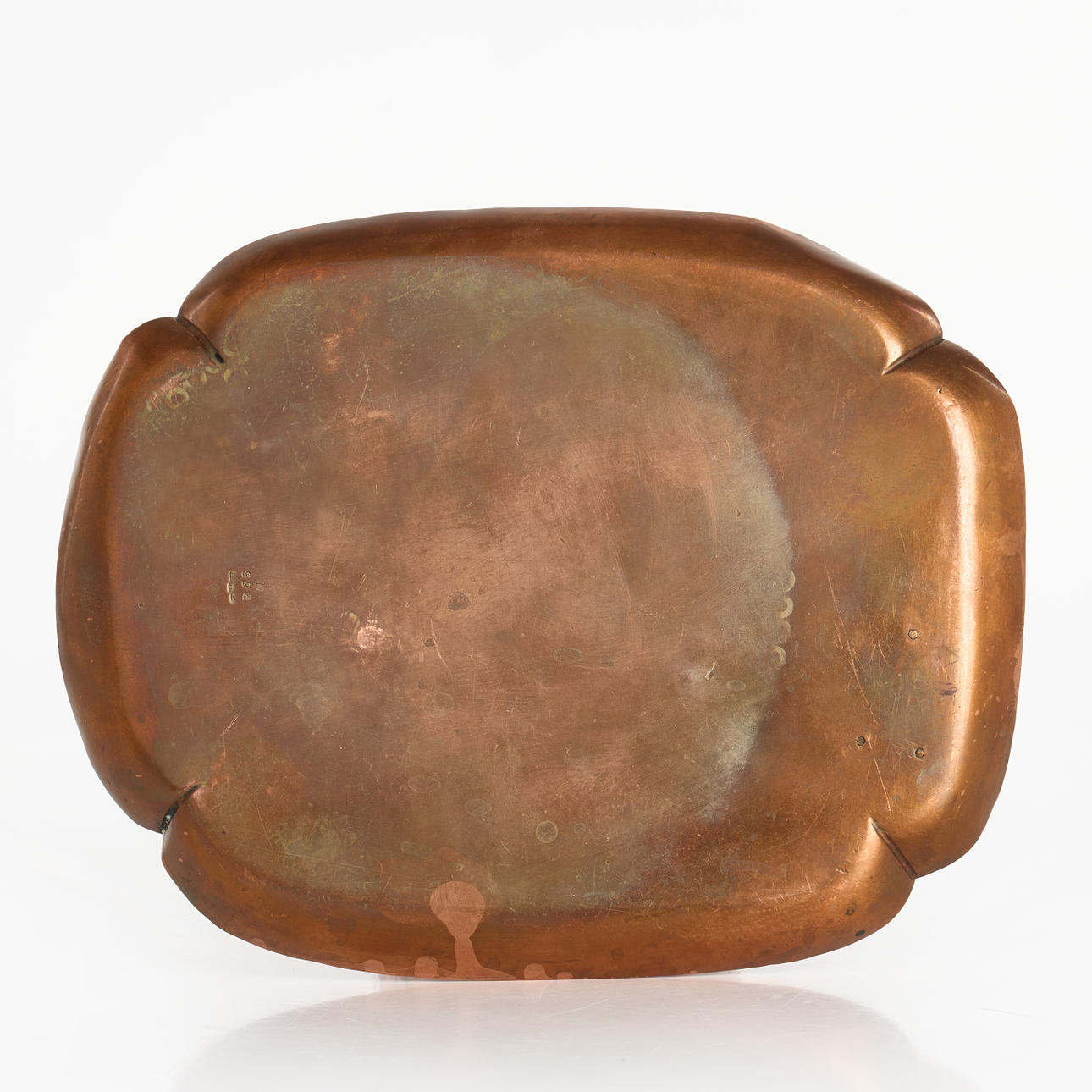 3906893. Ein japanisiertes Tablett, Gorham, Birmingham, England, später Teil des 19. Jahrhunderts. Kupfer mit Frosch-, Echsen- und Krötendekor aus Messing.