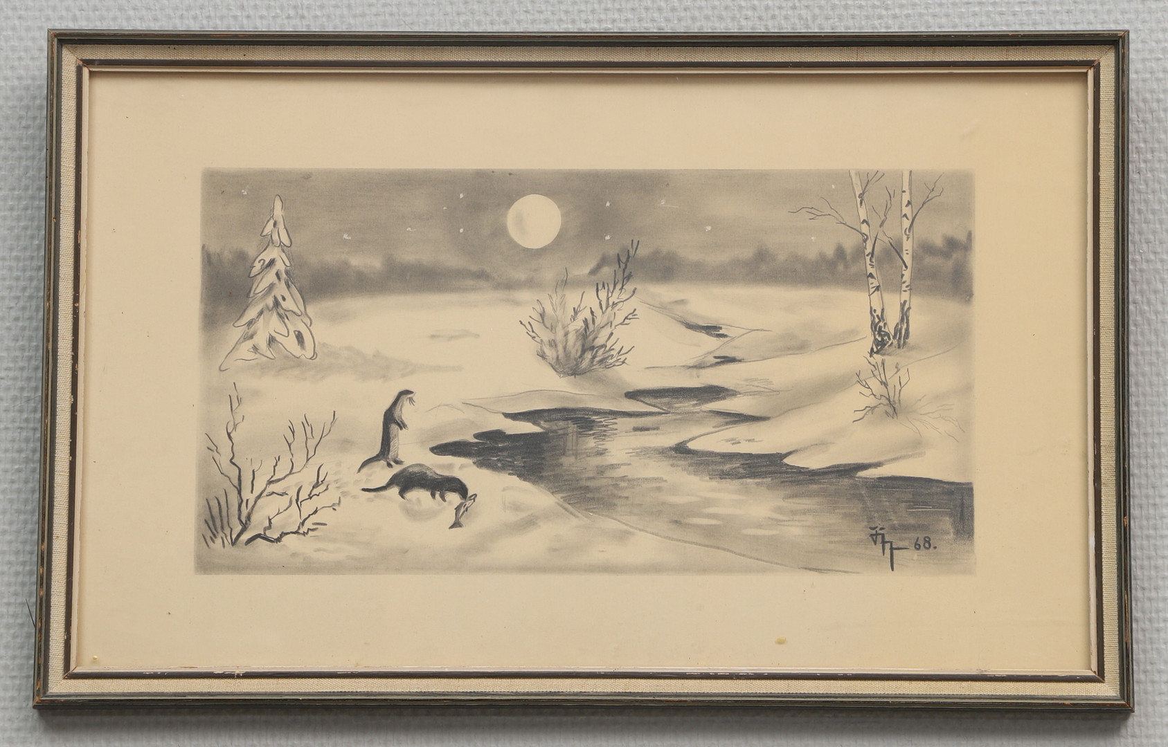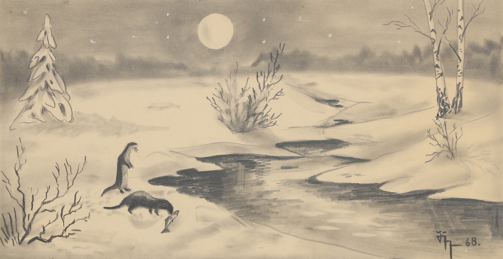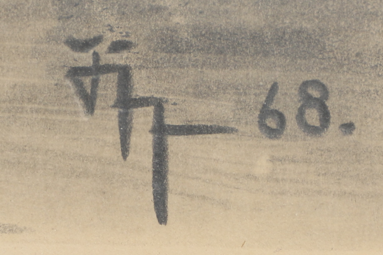 3909015. OIDENTIFIERAD KONSTNÄR. Bleistift, Winterlandschaft, signiert, datiert -68.