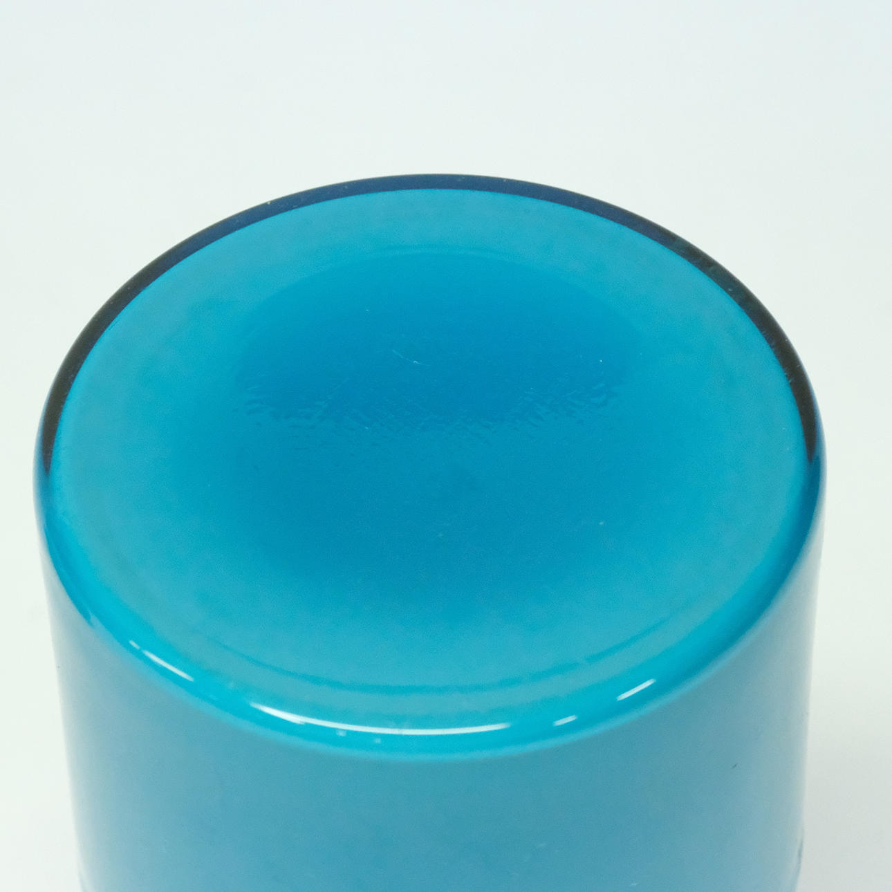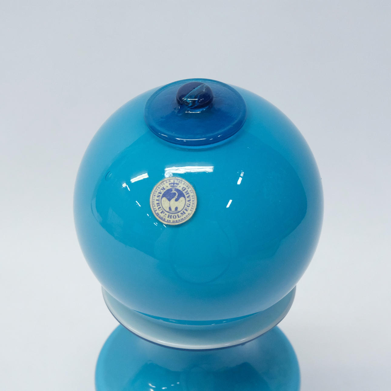 Höhe Vase 13 cm, Stopfen in Form einer Kugel, Höhe ca. 9 cm, beschriftet.