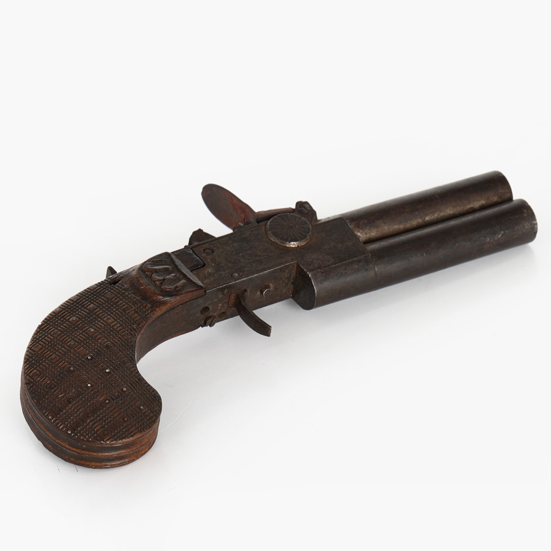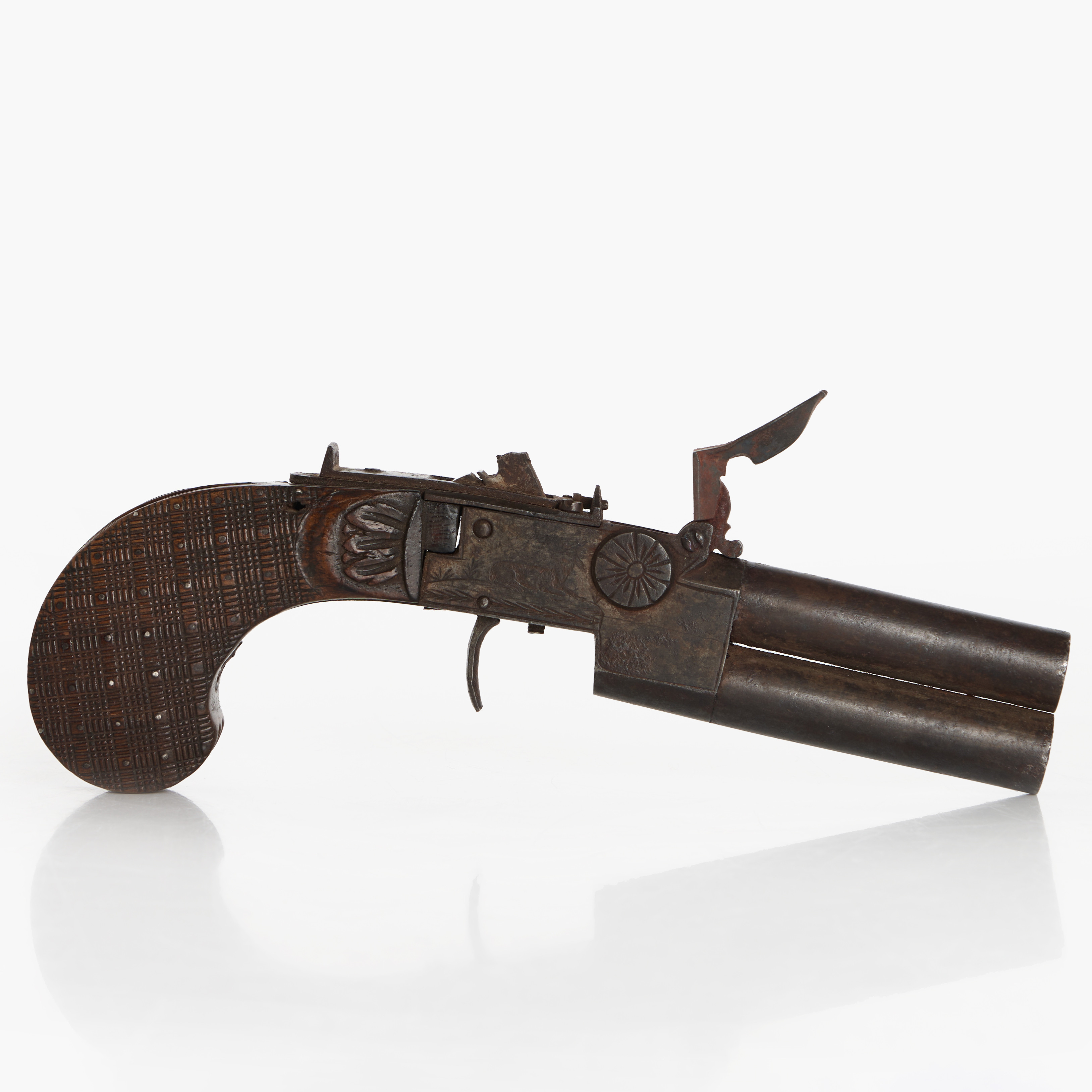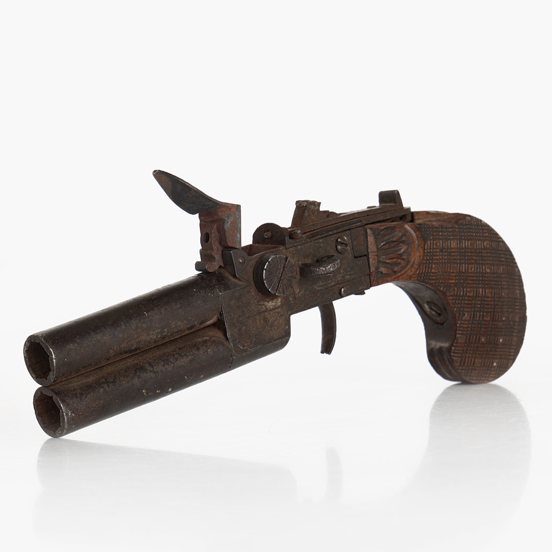 3910676. STEINSCHLOSSPISTOLE, DOPPELLÄUFIG.